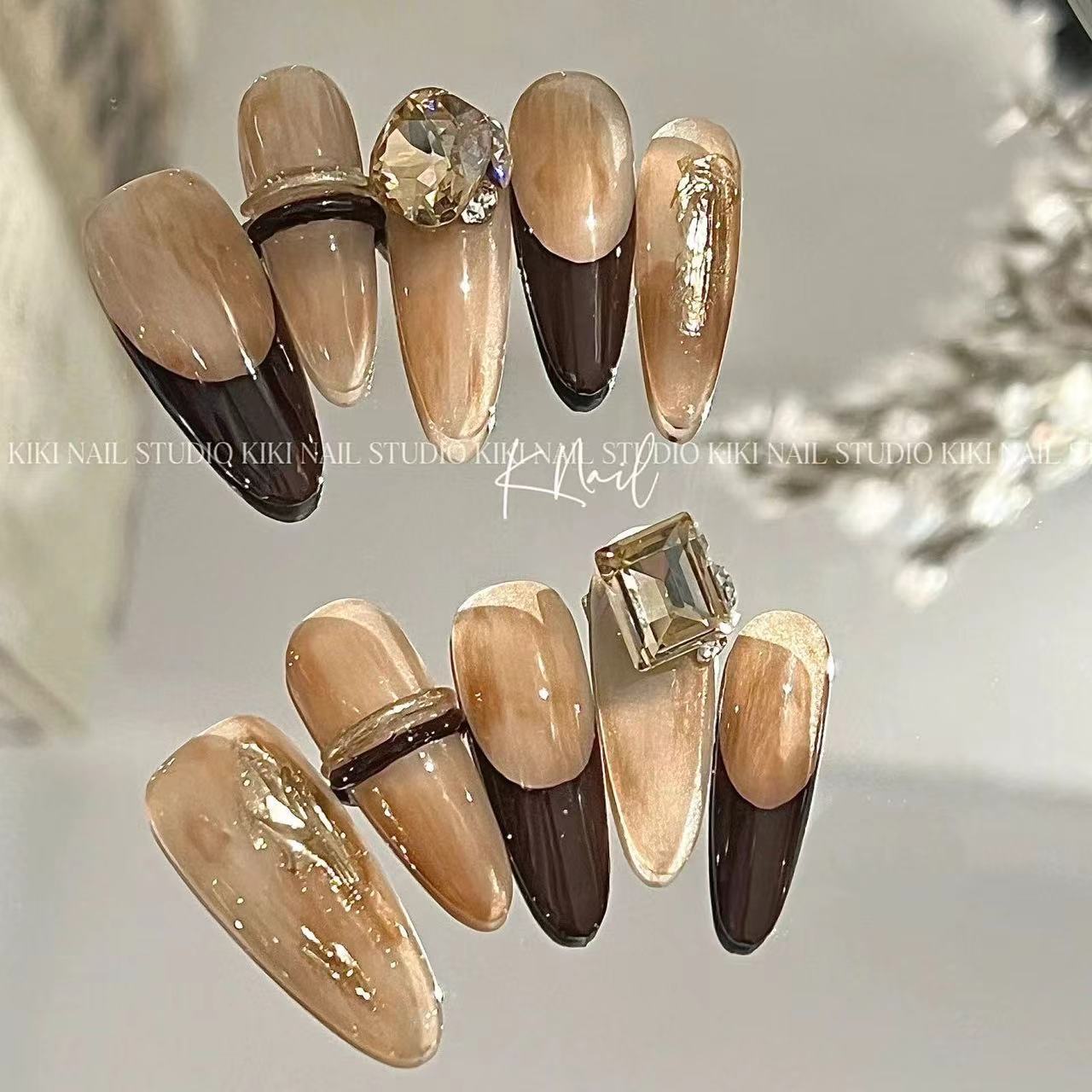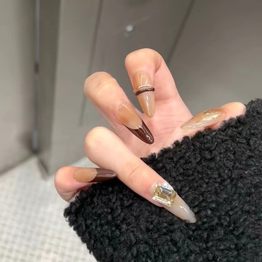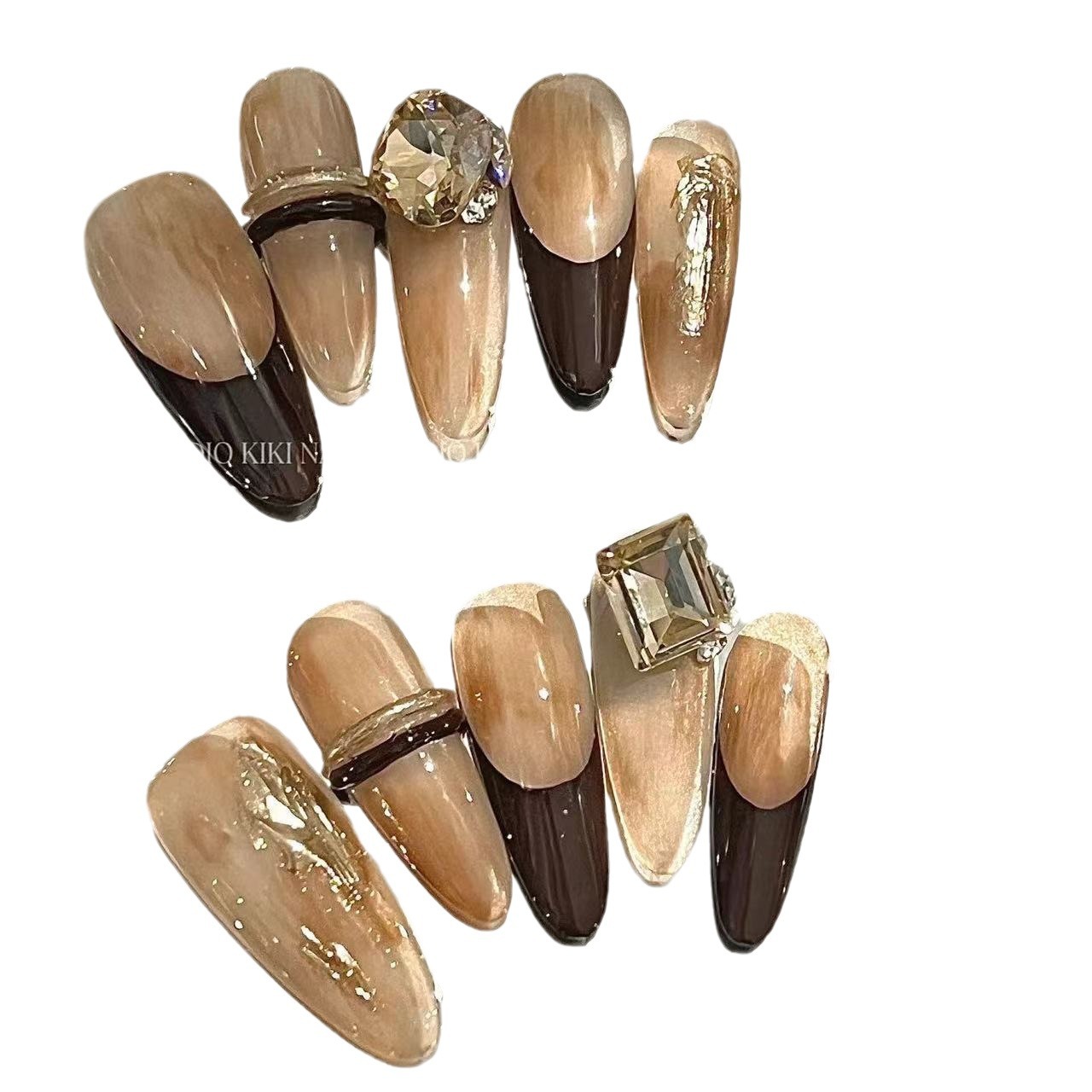 纯手工穿戴甲璀璨千金小红书新款晕染贴钻高级感气质显白穿戴美甲