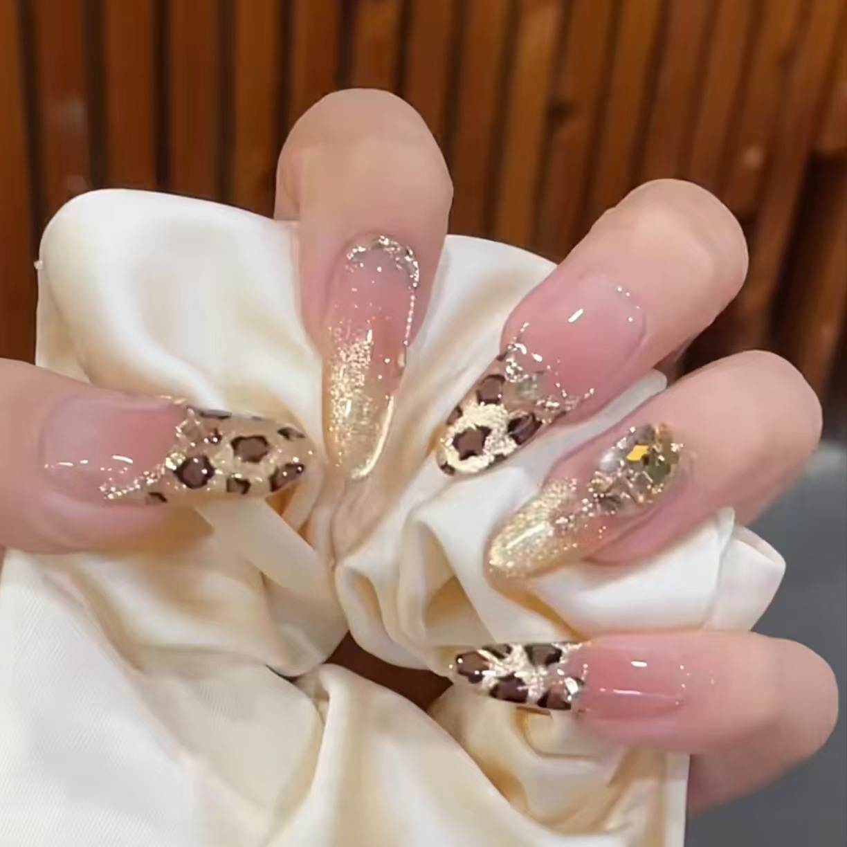 纯手工穿戴甲纯欲高级感爆闪猫眼法式豹纹贴钻可拆卸穿戴甲成品甲