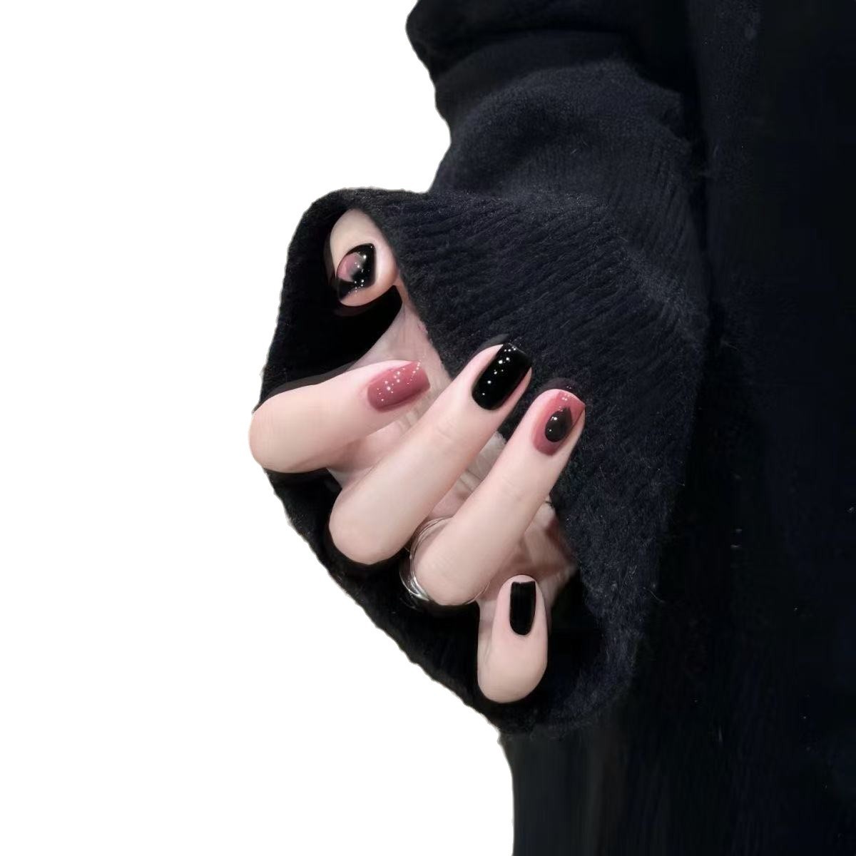 手工穿戴甲新年款乌梅子酱甲片撞色高级感简约显白纯欲风学生美甲