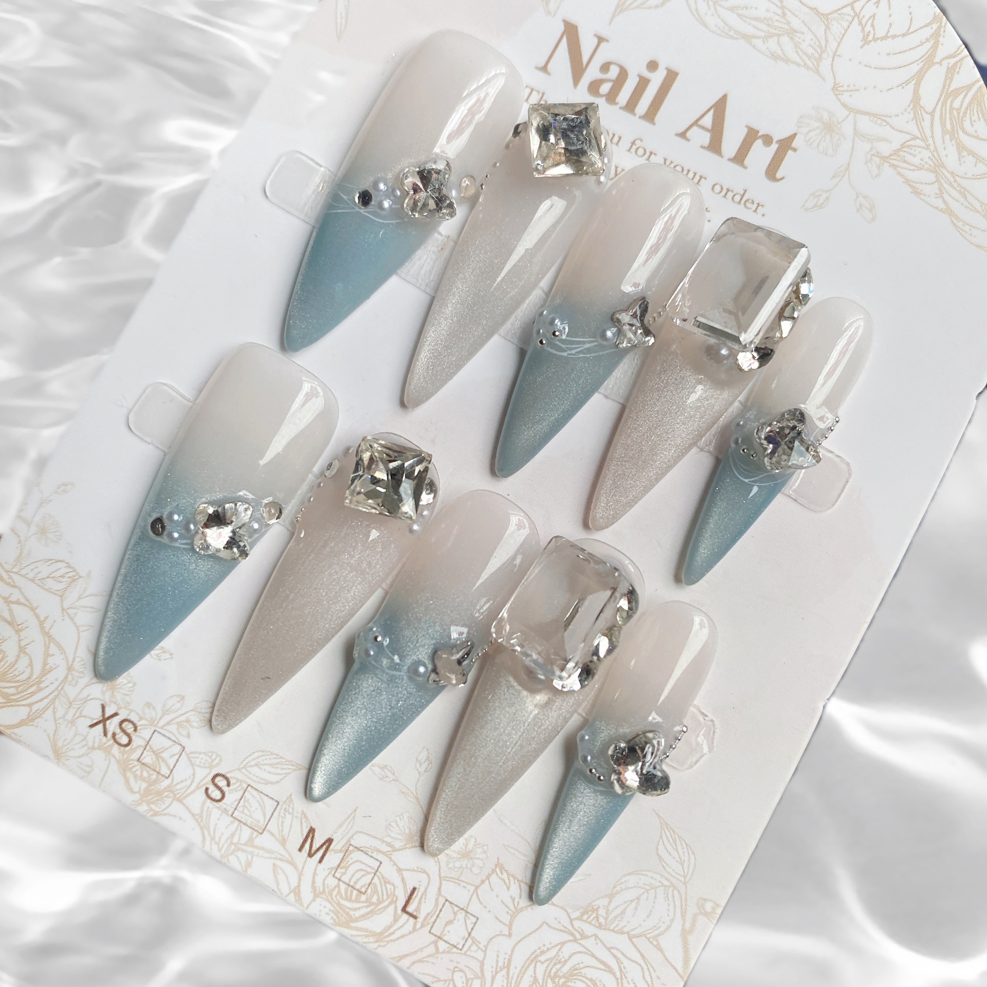 手工穿戴甲气质纯欲风ins猫眼贴钻显白可拆卸光疗甲成品薄荷星尘