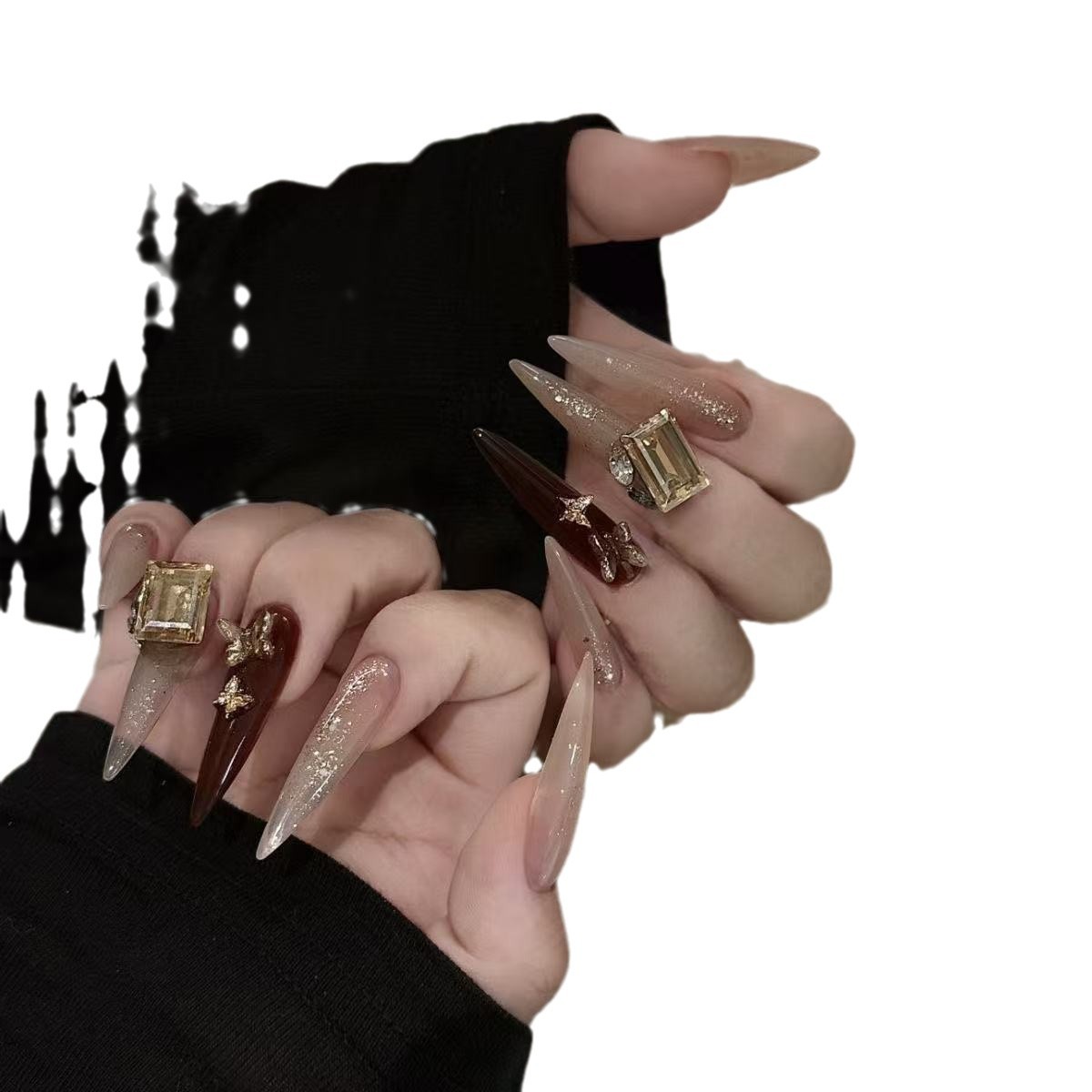 纯手工穿戴甲人鱼晕染高颜值贴钻光疗甲可拆卸使用新娘美甲片批发