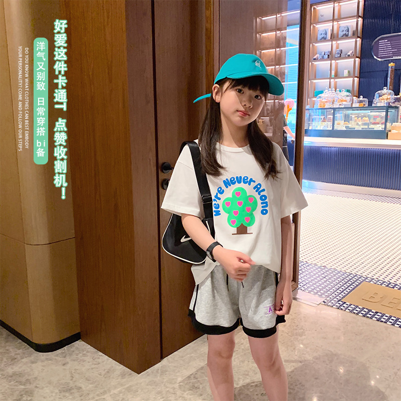 女童短袖纯棉t恤中大童夏季洋气宽松上衣休闲韩系半袖t童装潮