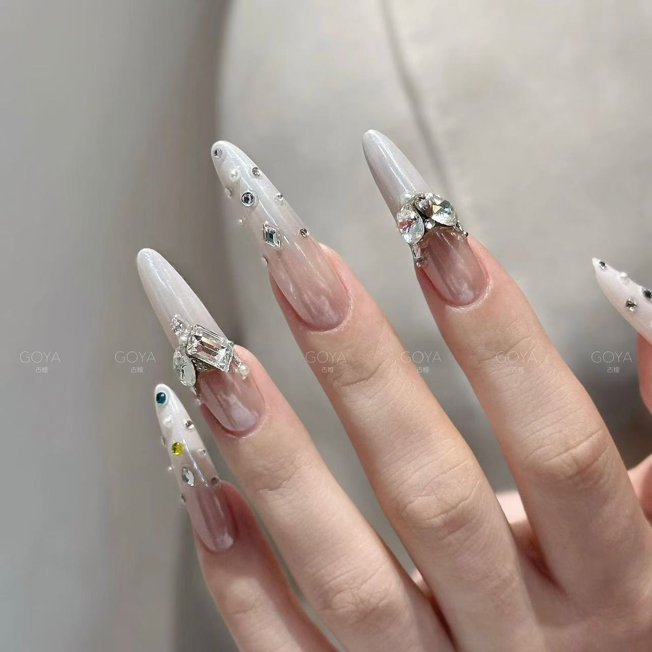 纯手工穿戴甲巴黎旧梦渐变贴钻爆闪高级感显白ins辣妹婚甲可拆卸