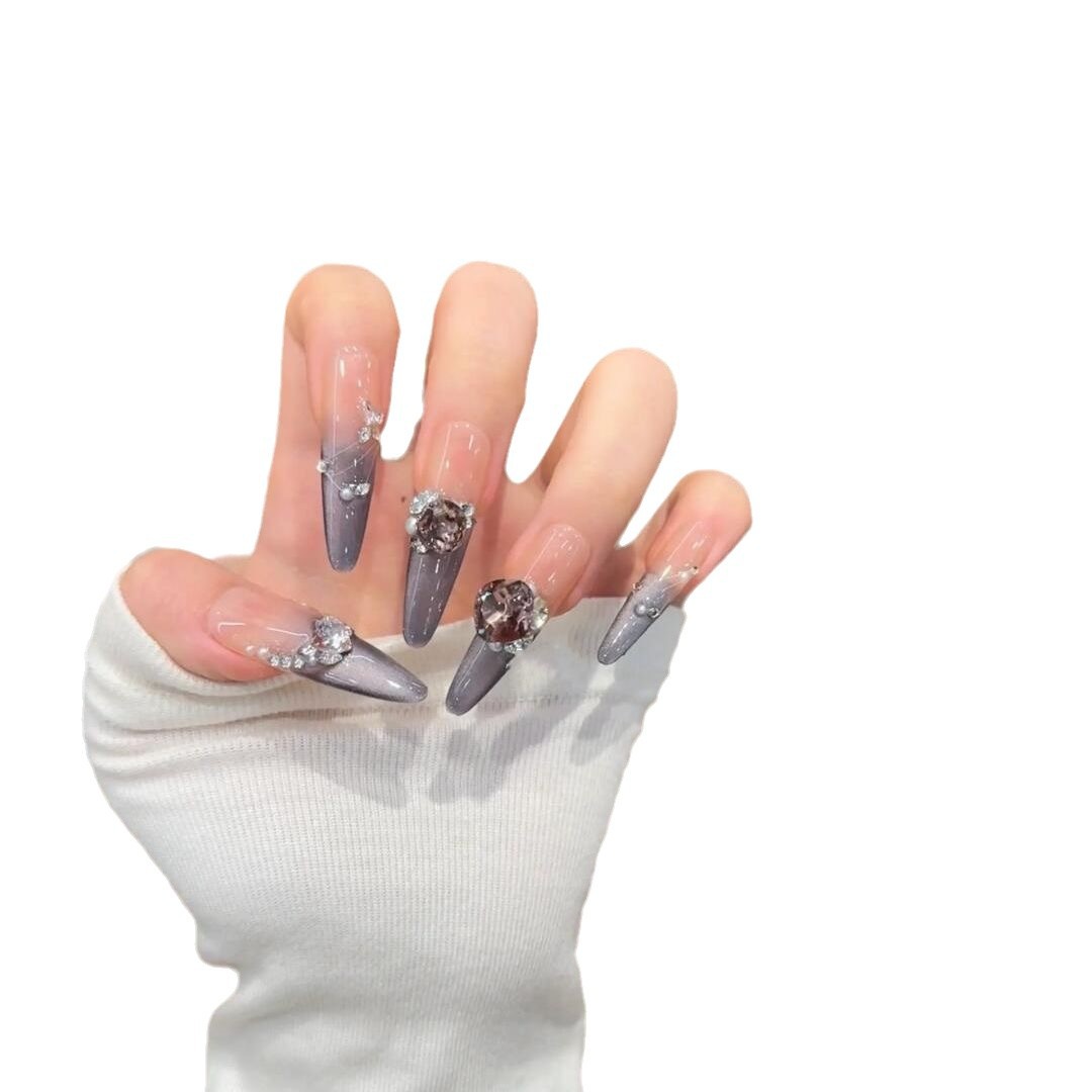 纯手工穿戴甲紫罗兰法式一秒心动美甲气质高级感猫眼爆闪美甲贴片