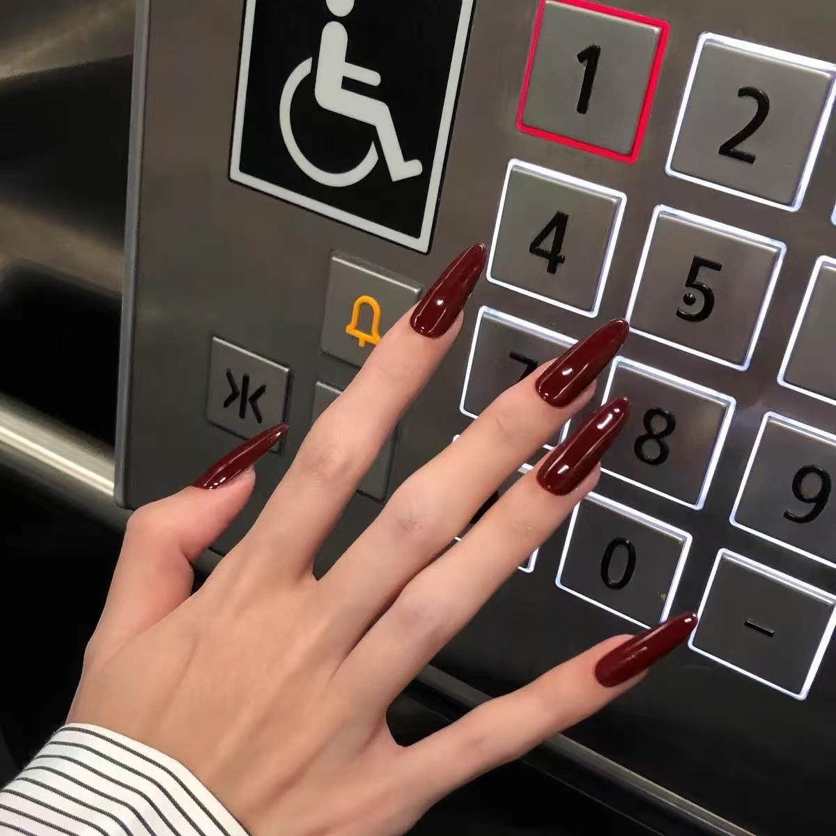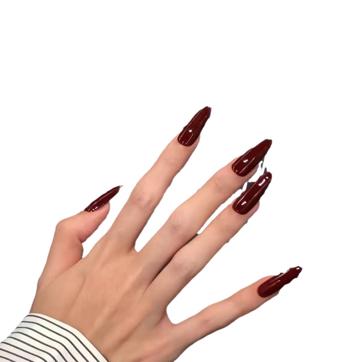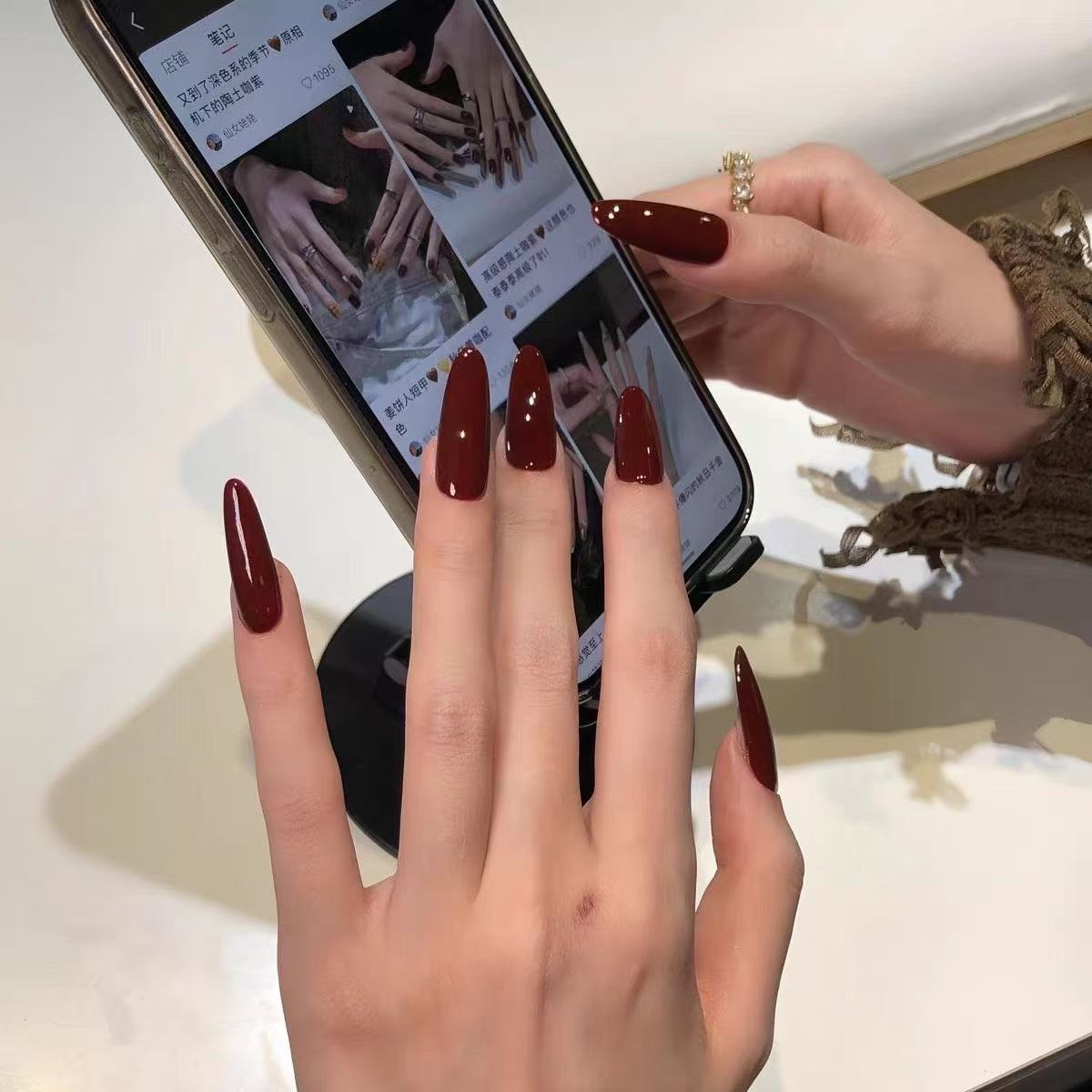 酒红闪亮钻石新年红火美甲闪亮金粉热卖新款钻石穿戴甲假指甲