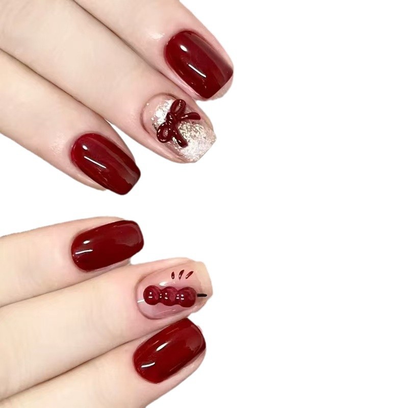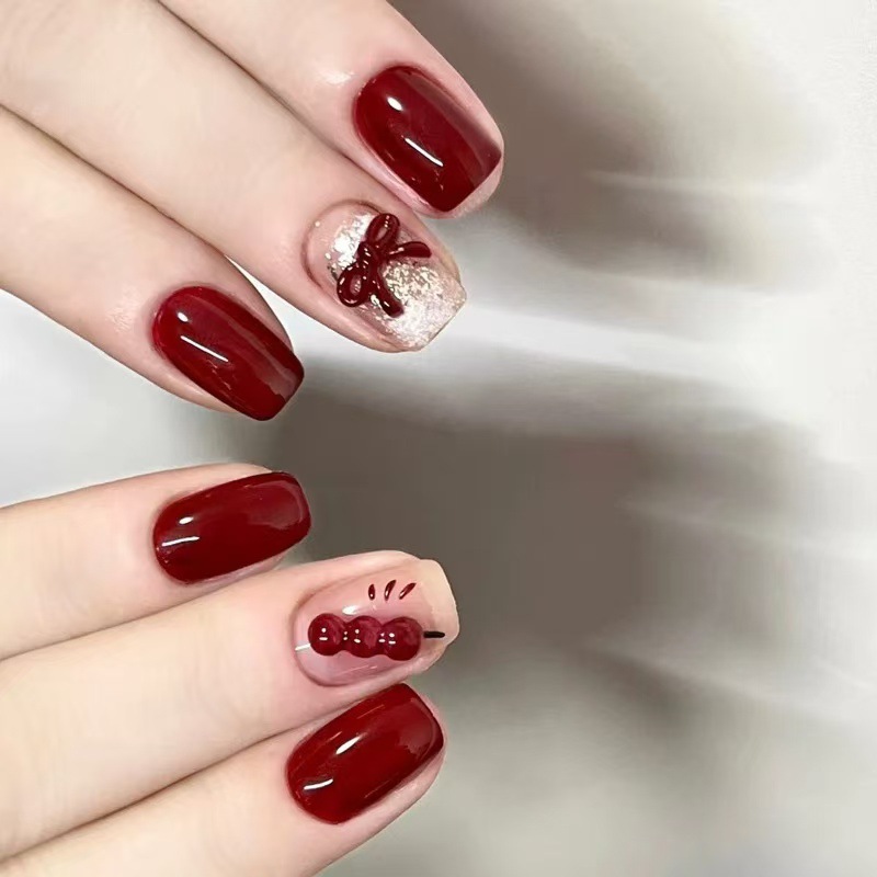 手工穿戴甲秋冬红色系喜庆立体冰糖葫芦甲片纯色气质显白新年美甲