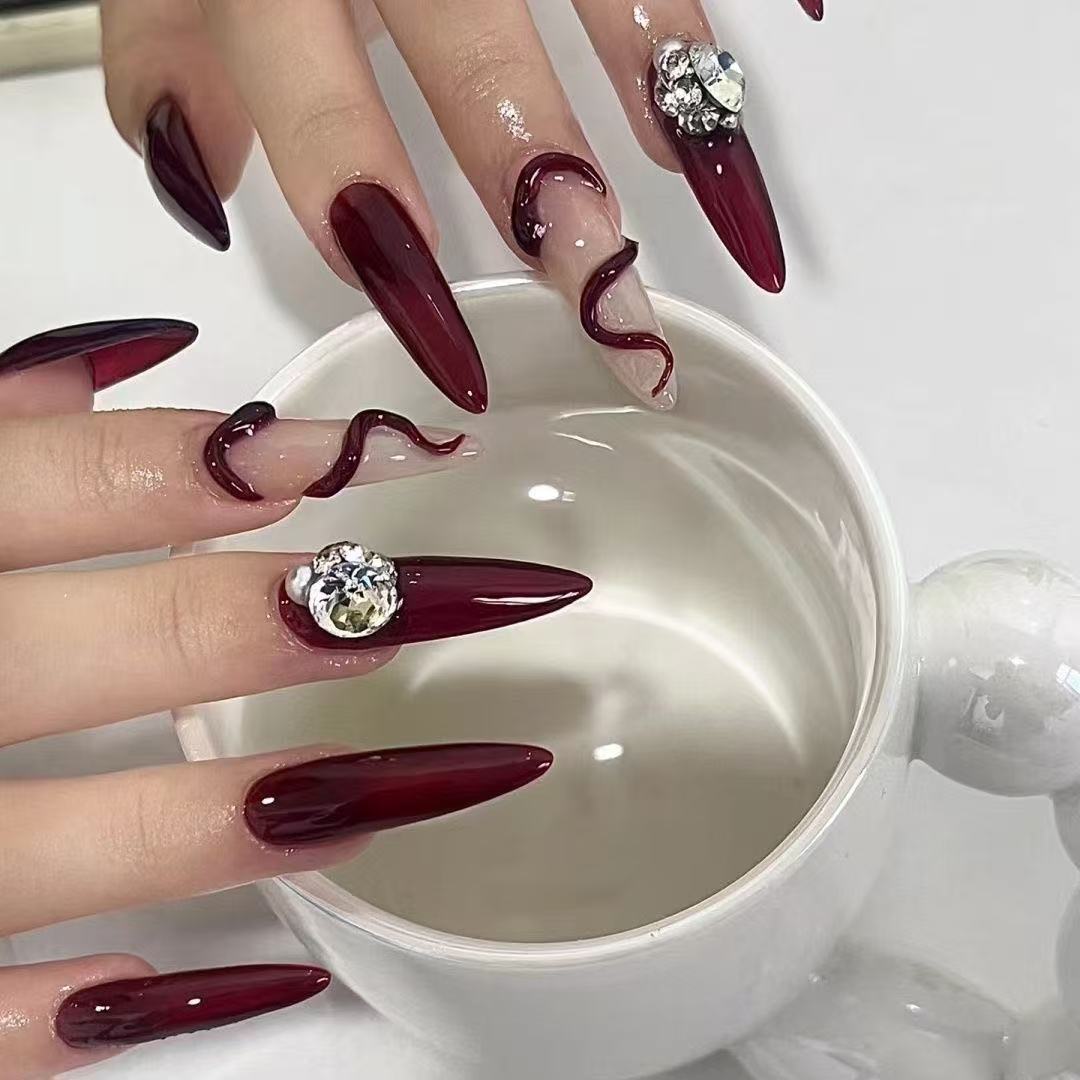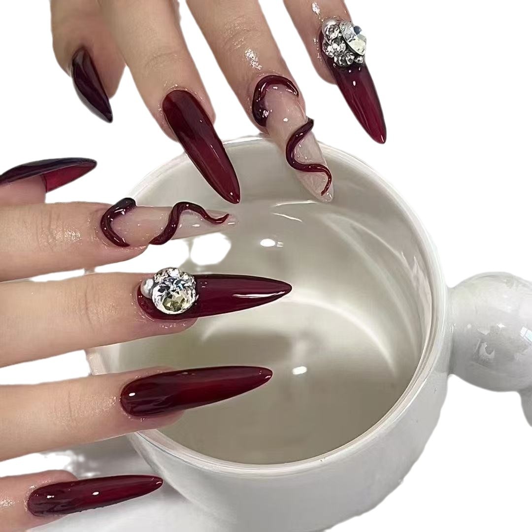 手工穿戴甲新年款小蛇红色辣妹暗黑风个性高级感气质显白美甲贴片