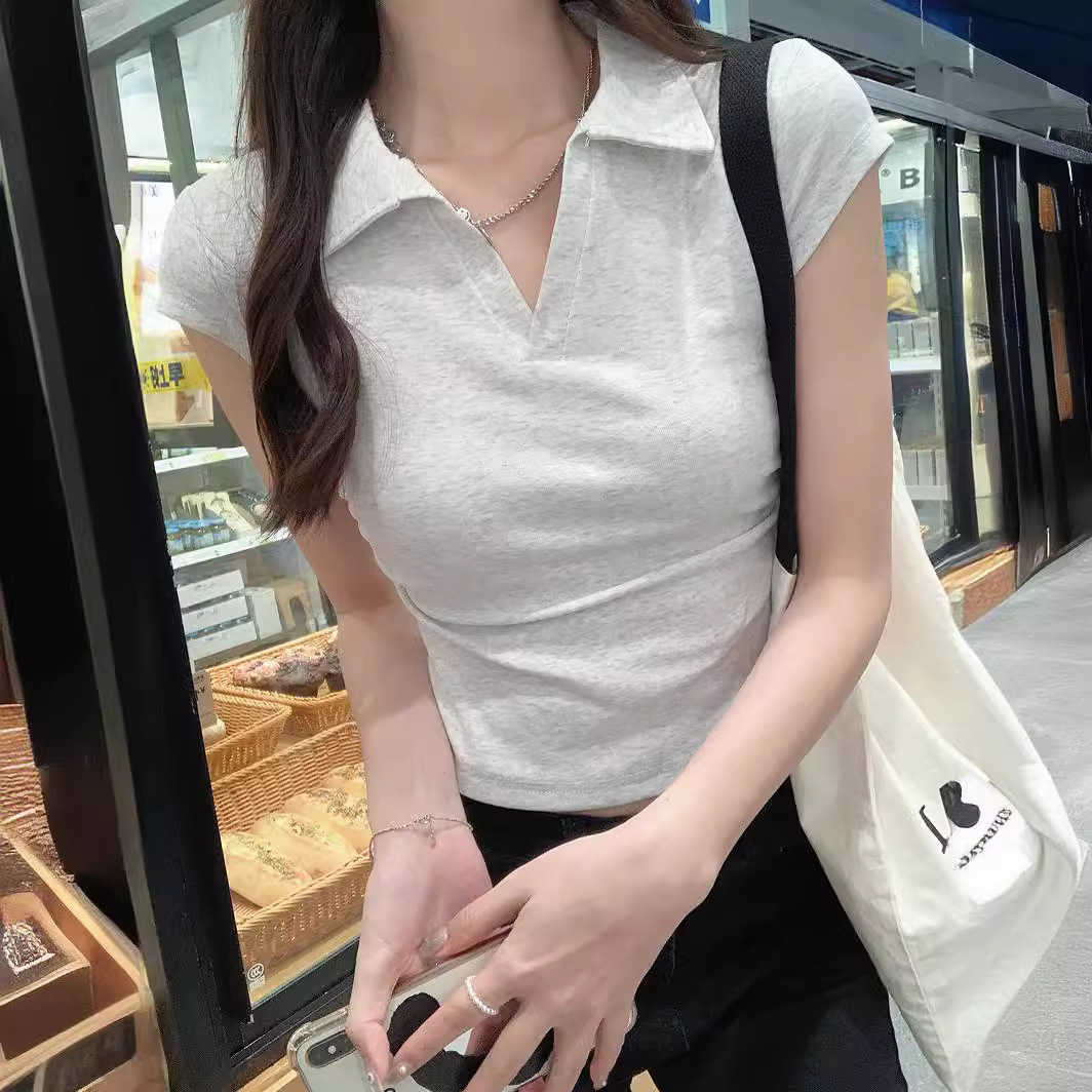 辣妹紧身Polo正肩短袖T恤女设计感小众修身内搭短款打底短上衣夏