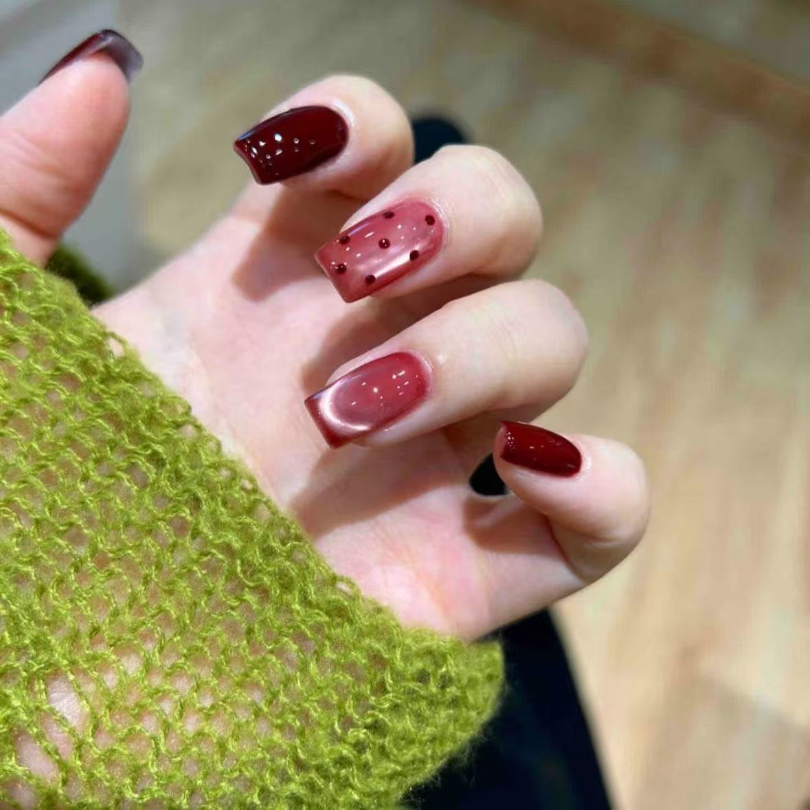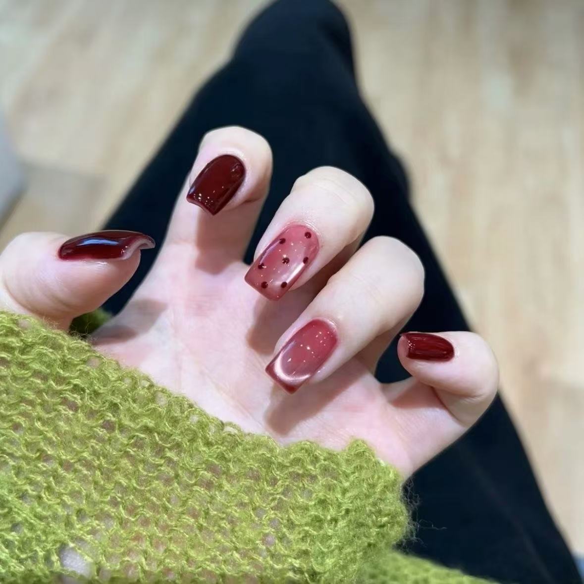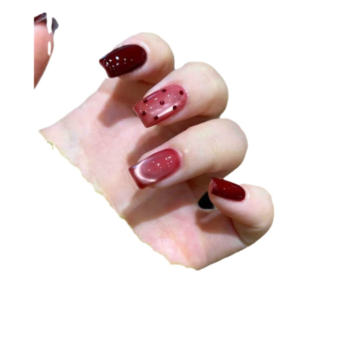 手工穿戴甲圣诞新年款红色气质波点猫眼高级感纯欲风显白学生美甲