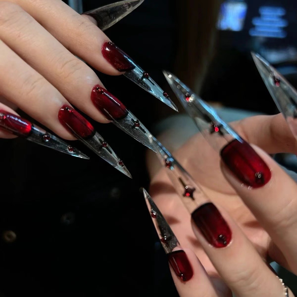 纯手工穿戴甲血色圣痕暗黑朋克血红猫眼欧美风高级感轻奢美甲贴片
