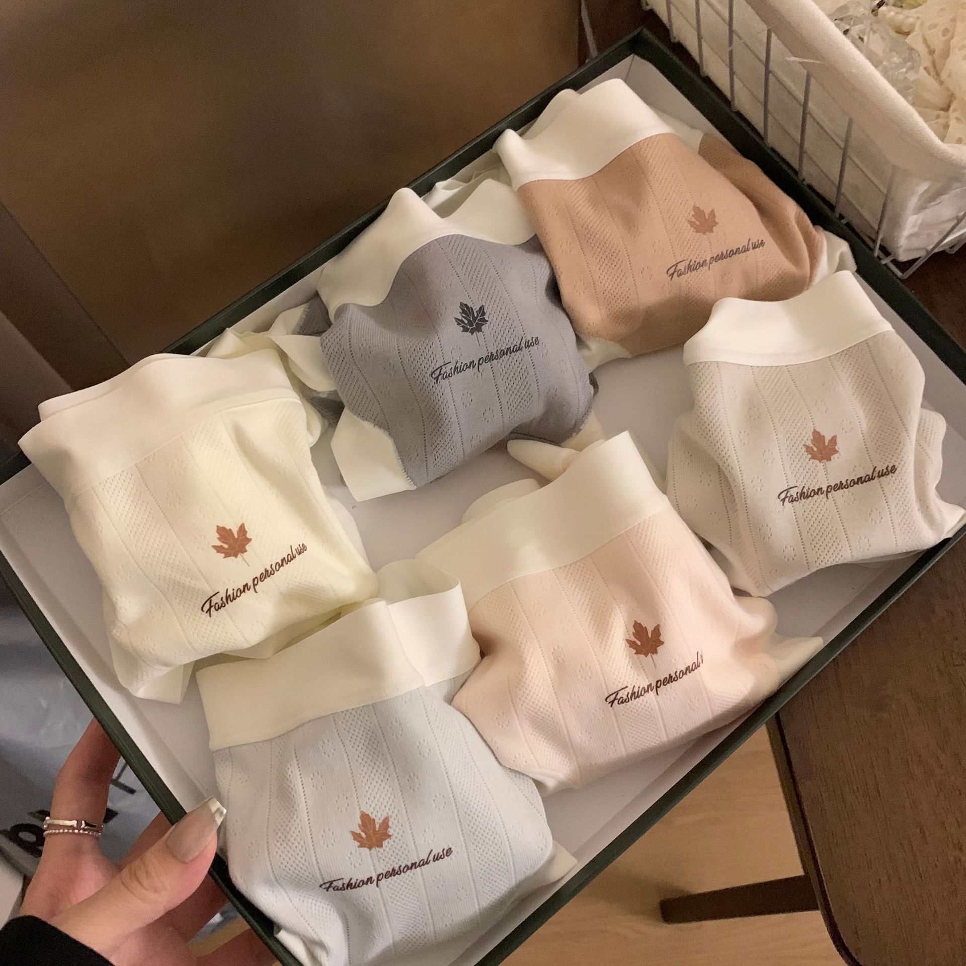 枫叶般的温柔~撞色舒适亲肤透气网孔纯棉档无痕中腰高弹女三角裤