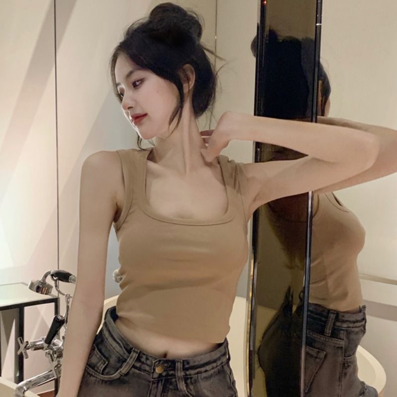 白色U领吊带背心女内搭外穿夏季辣妹性感修身显瘦露锁骨短款上衣