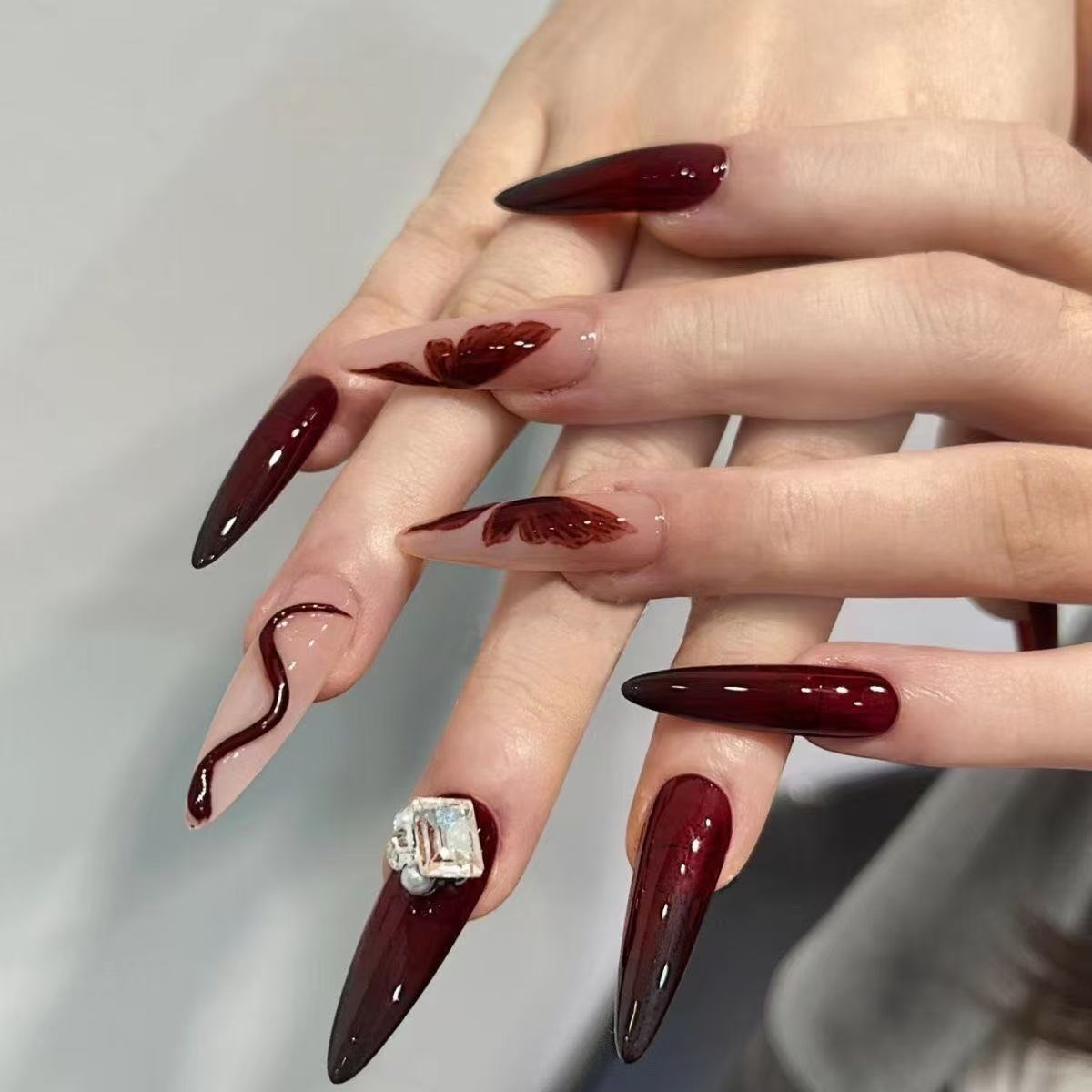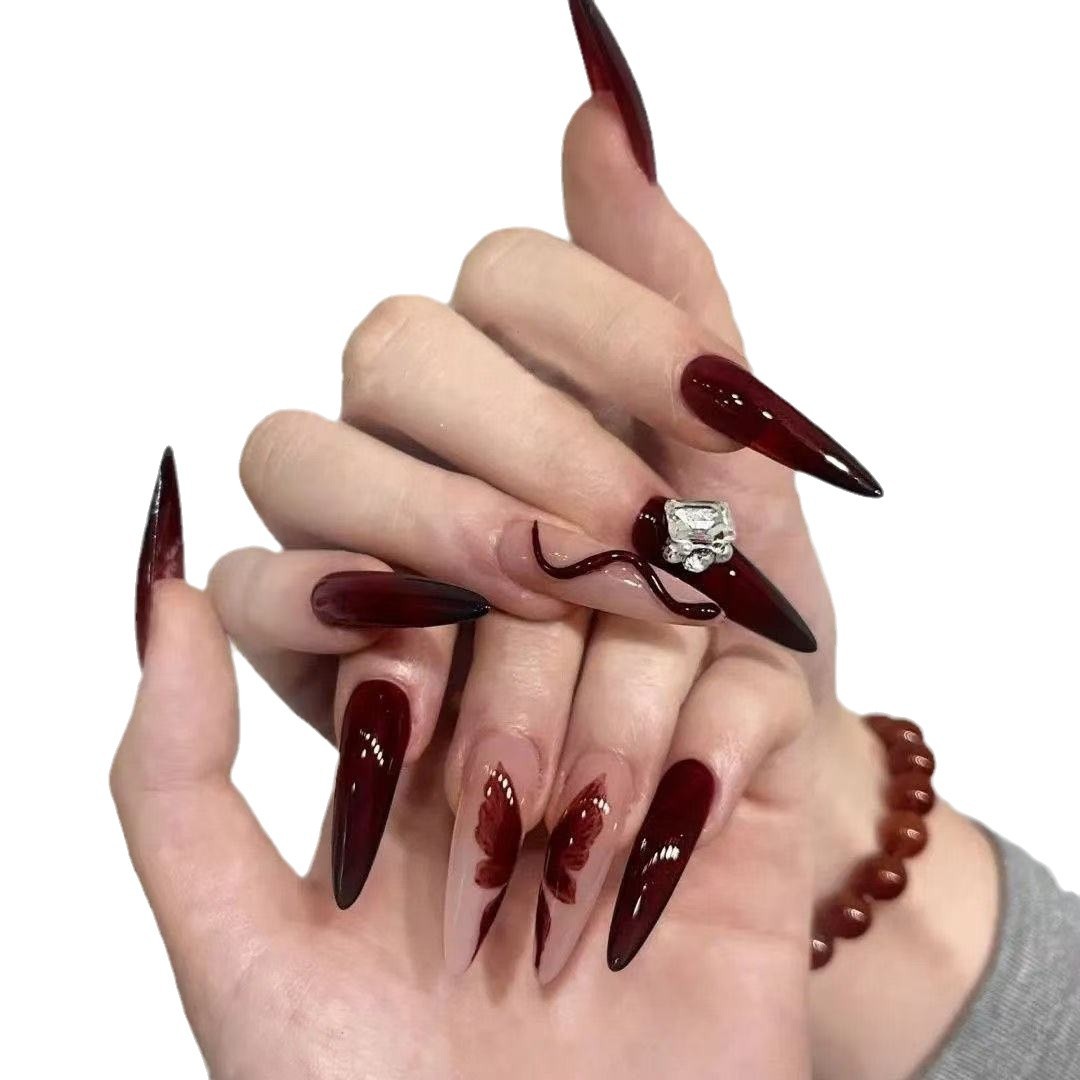 手工穿戴甲新年款蝴蝶与蛇红色辣妹甲片气质高级感神秘暗黑风美甲