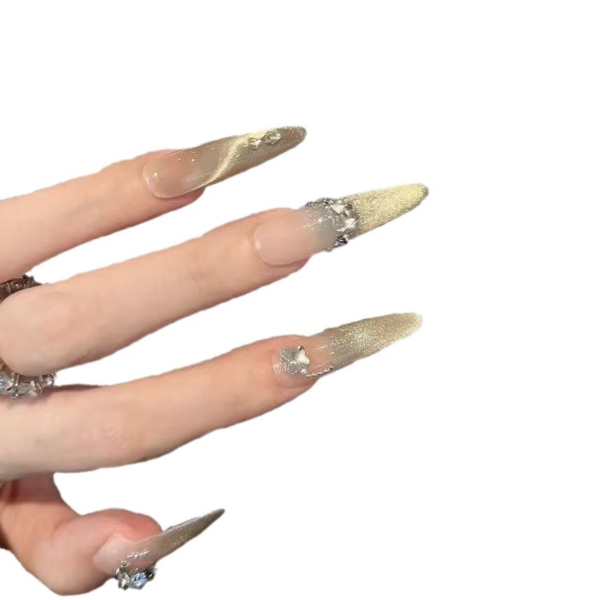 手工穿戴甲指上弹琴秋冬款气质清冷风甲片高级感冰透猫眼闪钻美甲