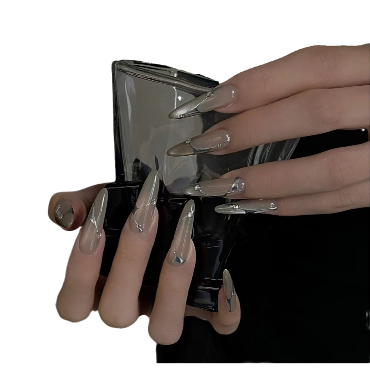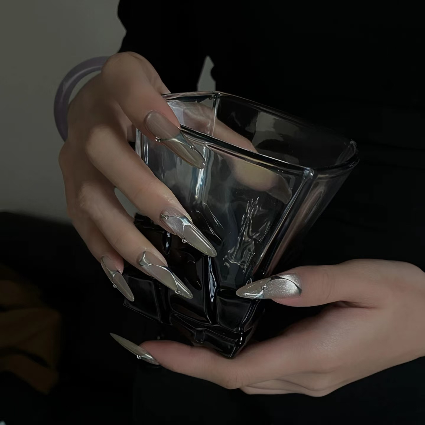 纯手工穿戴甲金属风美甲灯泡猫眼光疗甲高级感轻奢显白小红书同款