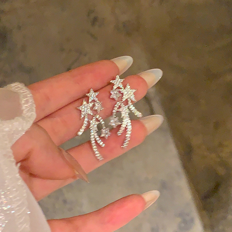 微镶锆石气质星星流苏耳钉S925流星耳环轻奢小众耳环设计感耳饰女