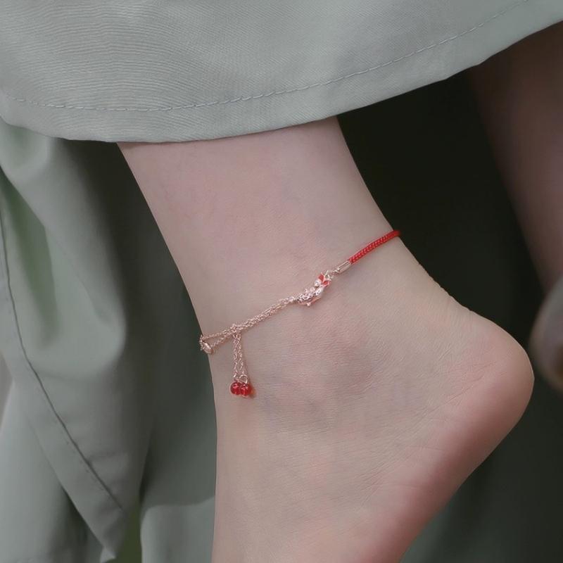 上岸锦鲤红绳脚链女新款潮足链脚环编织绳520情人节礼物