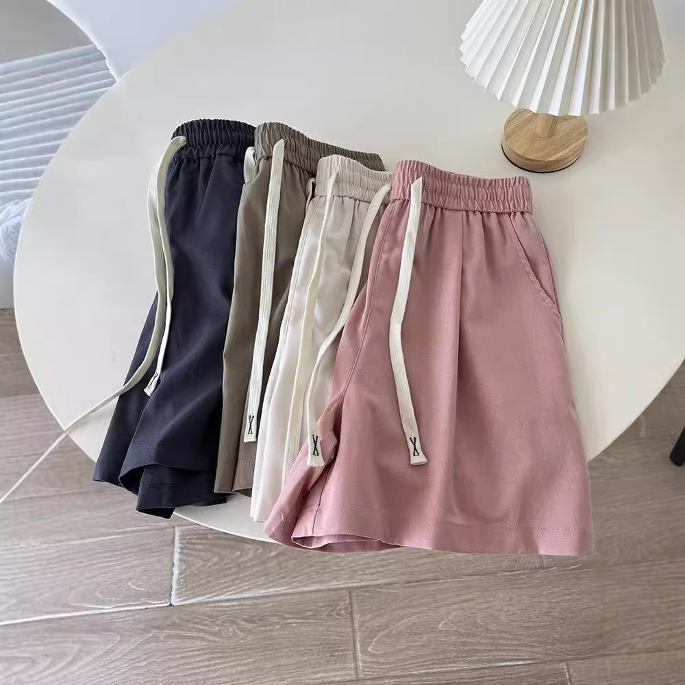 棉麻短裤女夏季松紧腰抽绳宽松透气阔腿运动裤纯色百搭居家热裤薄