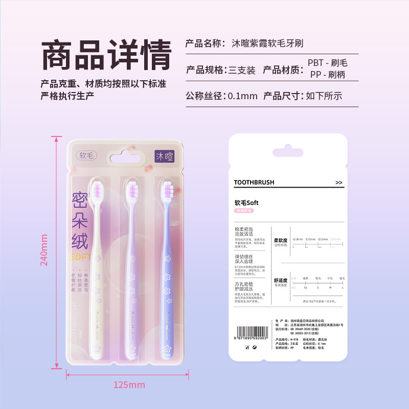 【3支装】爆款高颜值紫色樱花高级软毛成人牙刷可独立分装