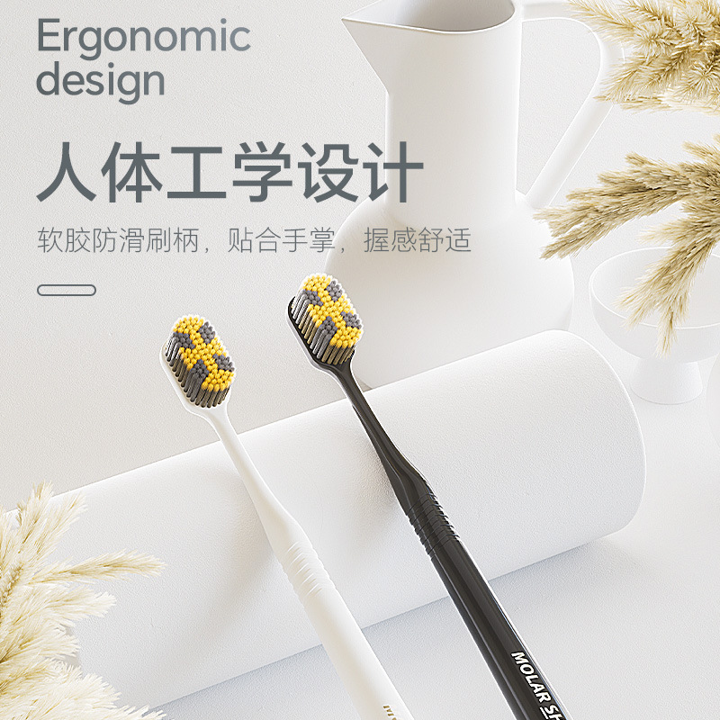 【2支装】超大密植百孔刷头细软竹炭刷丝牙刷有效清洁牙垢