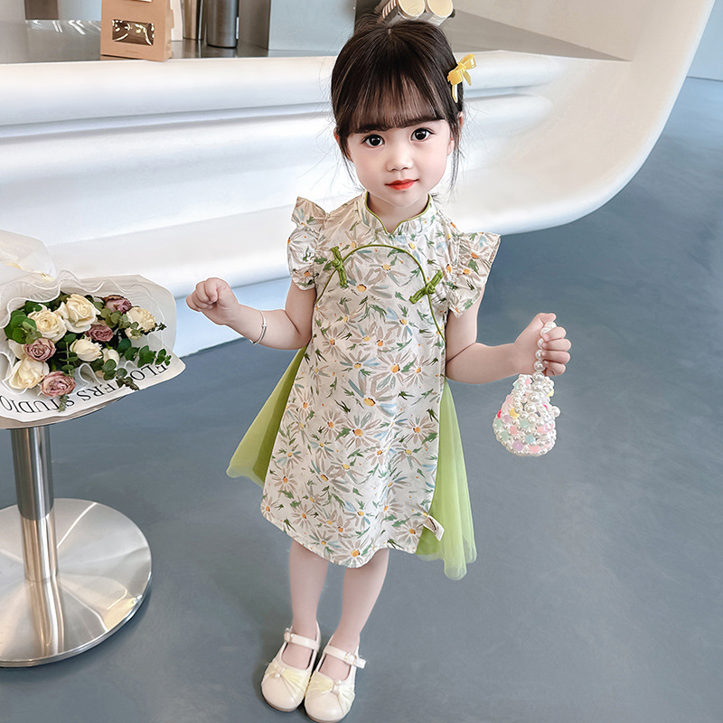 女童中国风超仙时尚洋气唐装夏季新品碎花拼接旗袍裙唐装