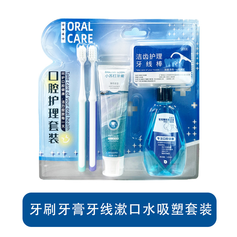 牙刷牙膏牙线漱口水吸塑现货套装1套