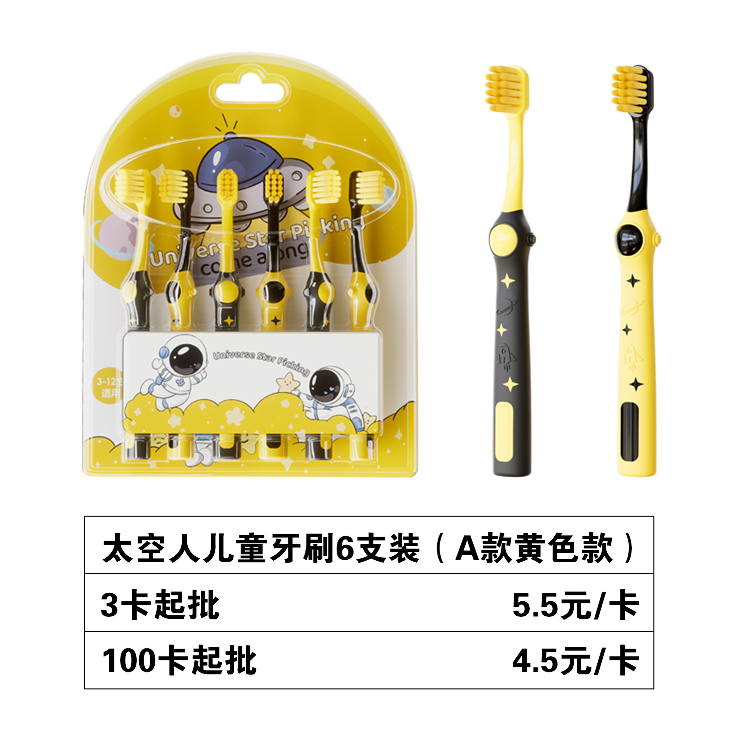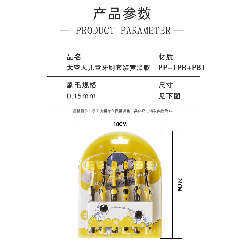 太空人儿童牙刷6支装(A款黄色款)