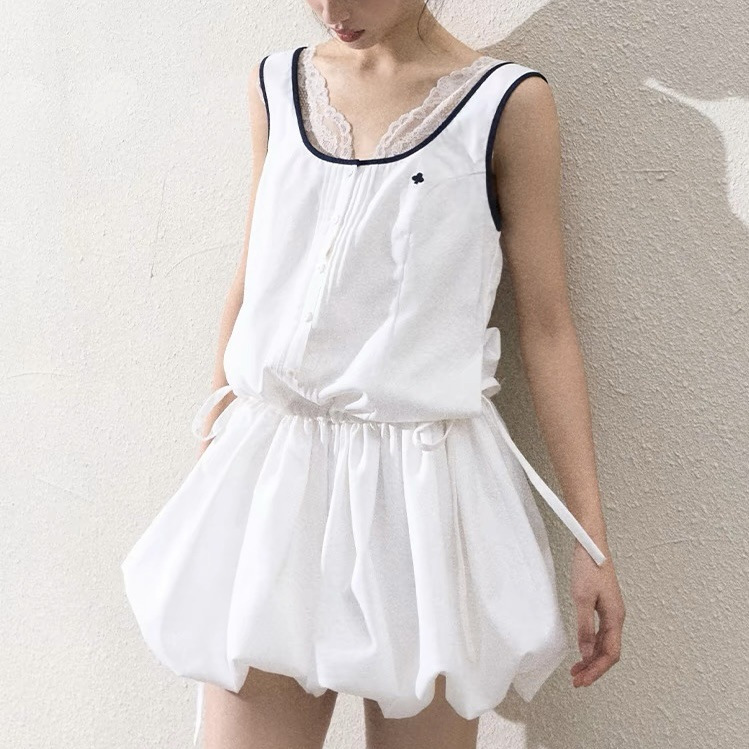 '少女的无序'运动休闲时髦无袖花苞裙气球气泡裙子连衣裙