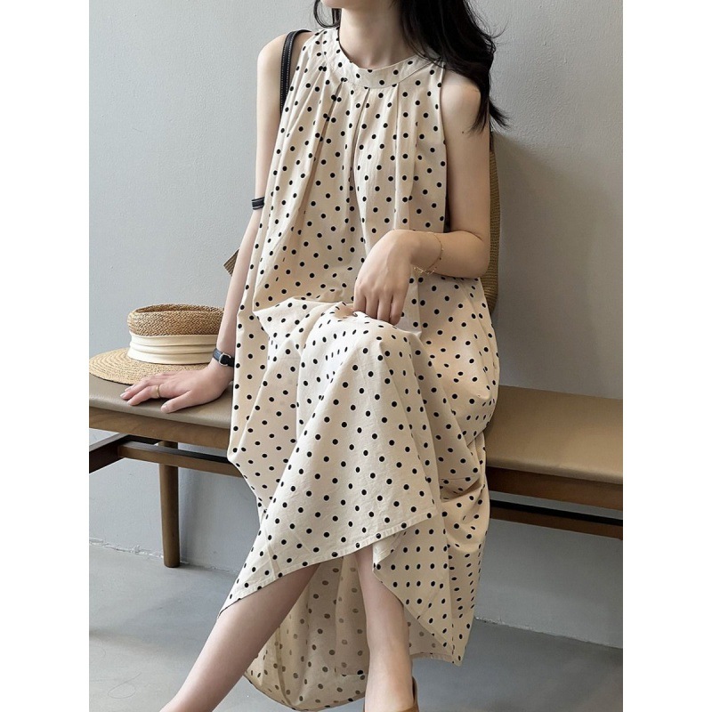 法式设计感小众无袖挂脖波点背心连衣裙女夏季森系宽松显瘦长裙子