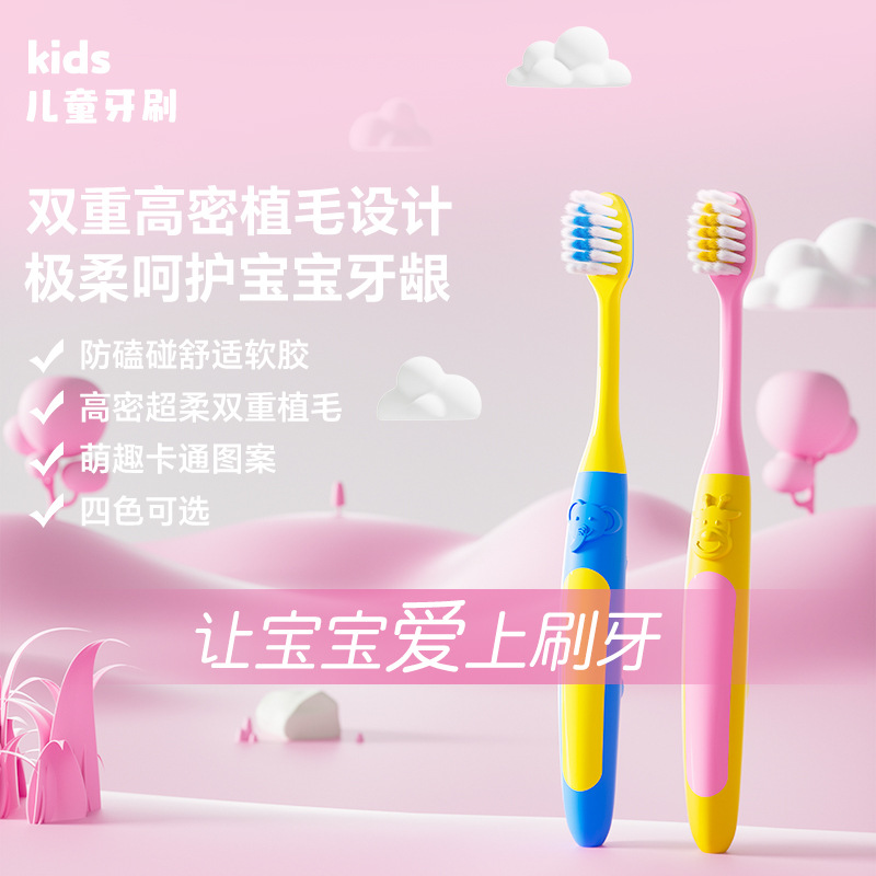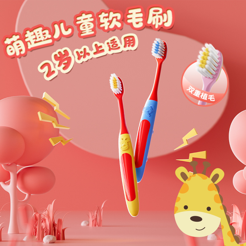 可爱卡通小鹿小象儿童软毛牙刷呵护牙龈2-12岁宝宝适用