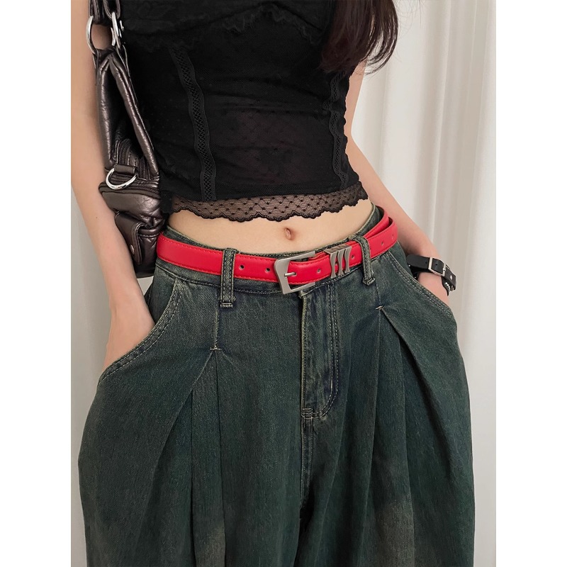韩版复古简约腰带女士小众设计感时尚百搭红色皮带配裙子牛仔裤带