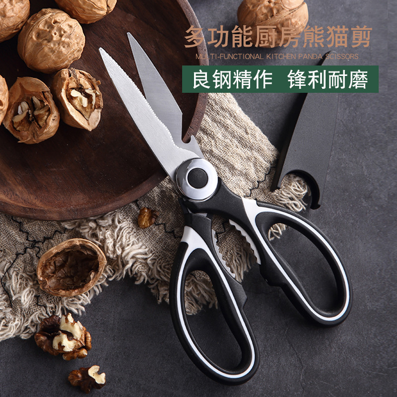 家用厨房剪刀 多用途熊猫剪 阳江不锈钢夹核桃鸡骨剪