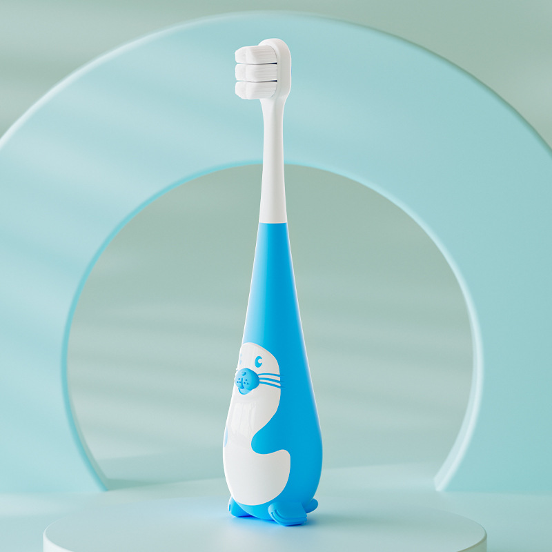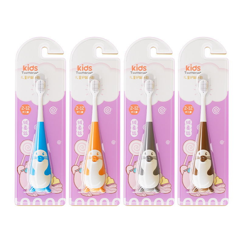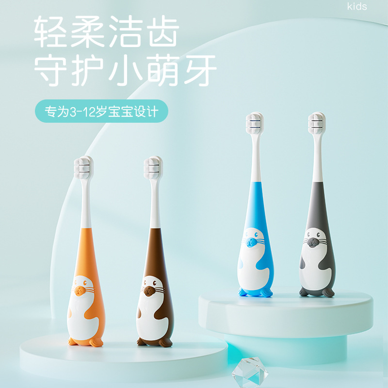 新款儿童牙刷卡通小海豹造型细密软毛适用3-12岁宝宝