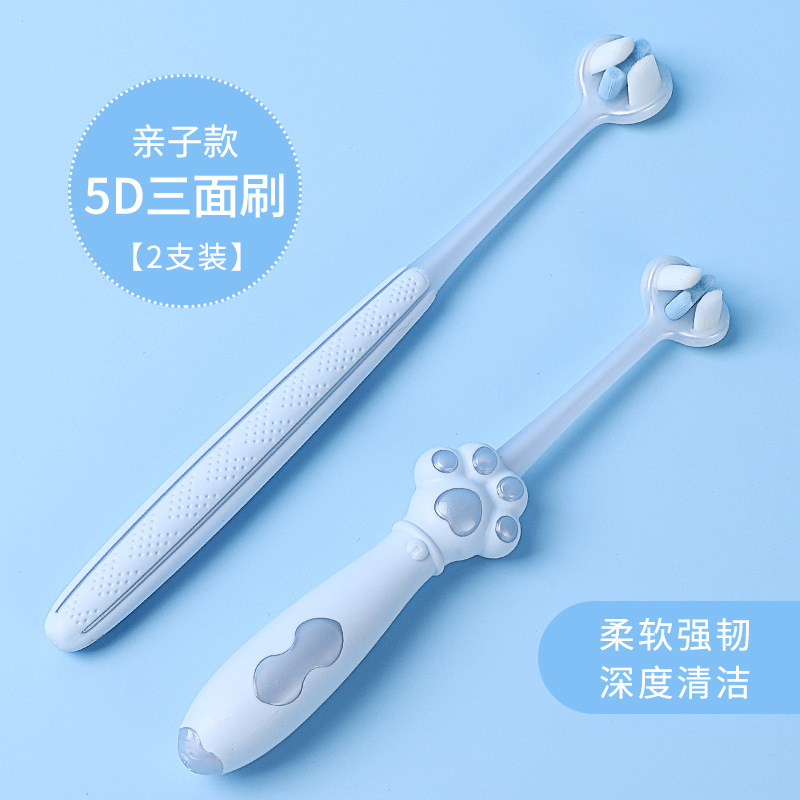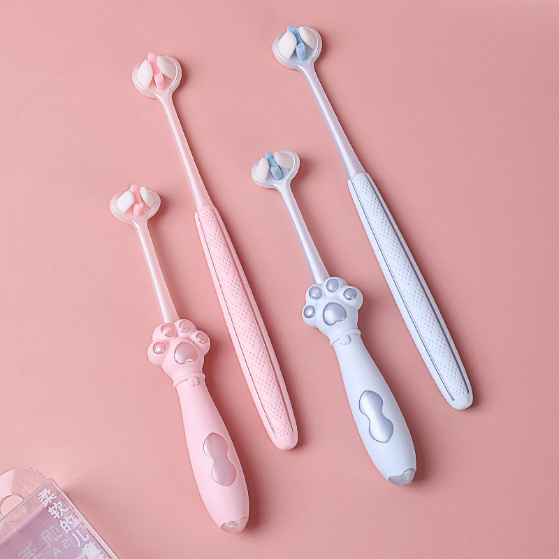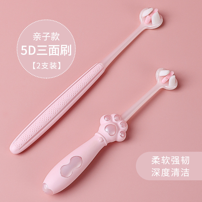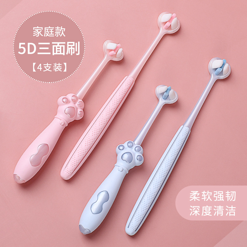 三面成人软毛牙刷猫爪儿童牙刷可爱男女孩宝宝口腔清洁护龈家庭装