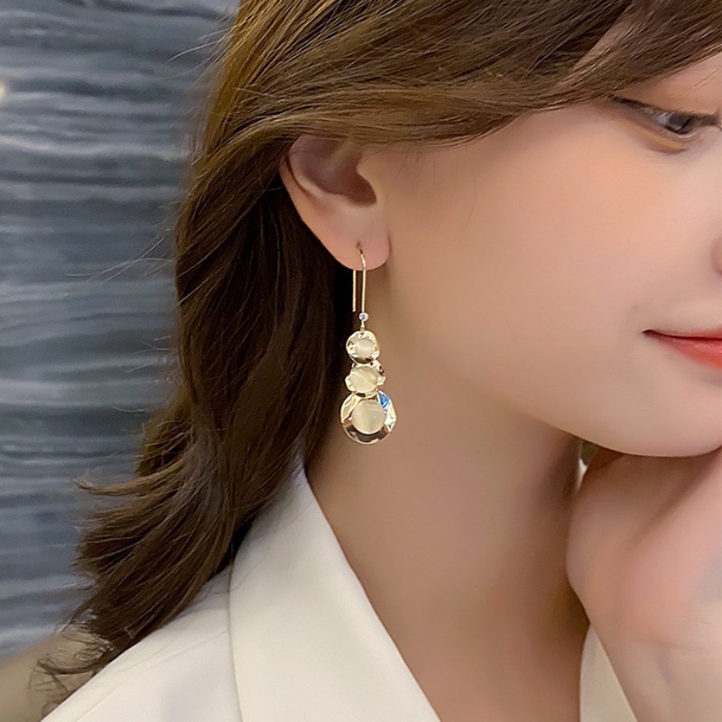 电镀真金S925银针圆形猫眼石流苏耳环新款轻奢耳挂高级感耳饰