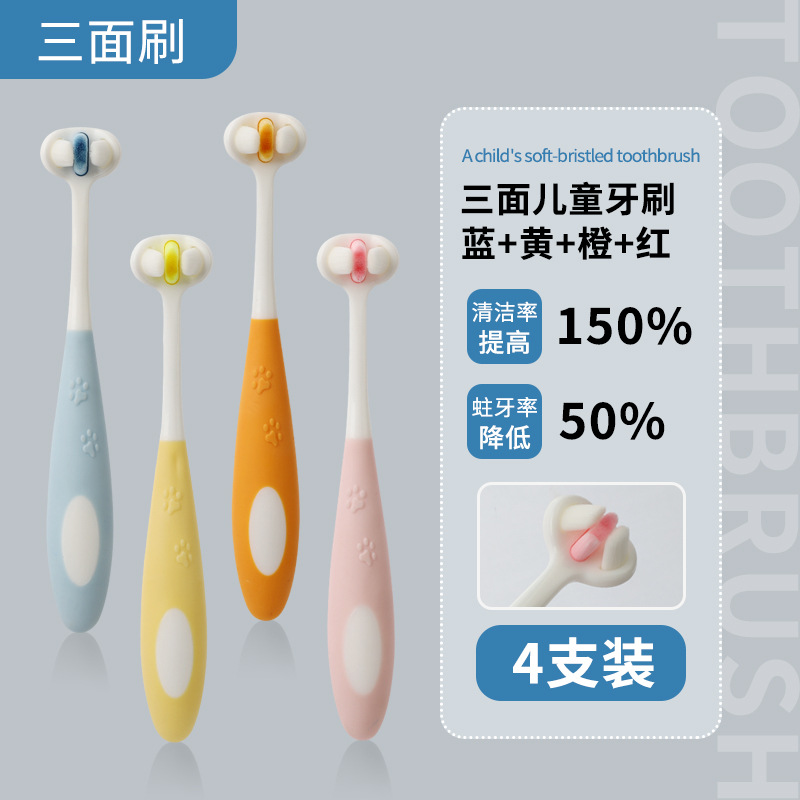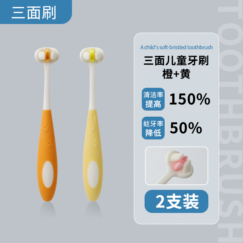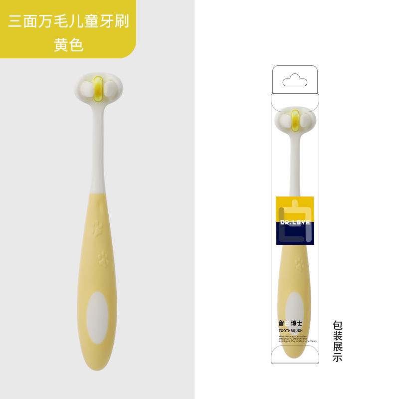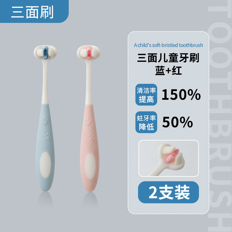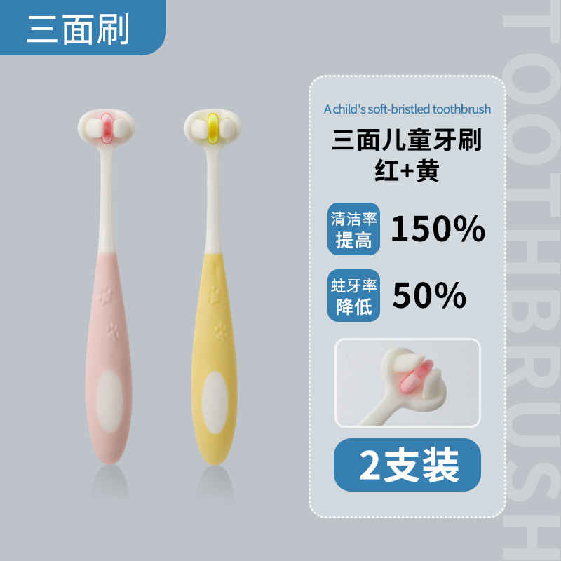 儿童软毛牙刷宝宝3-10岁万毛牙刷清洁三面包裹护齿猫爪防滑手柄