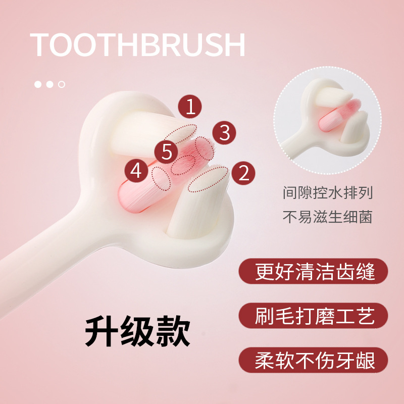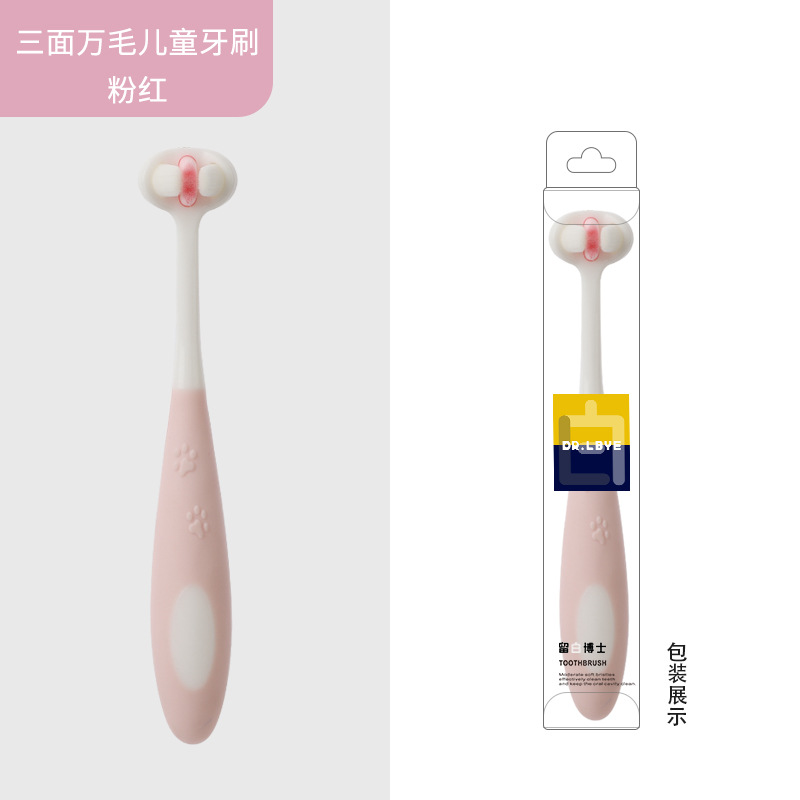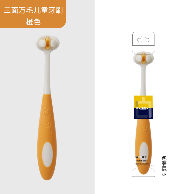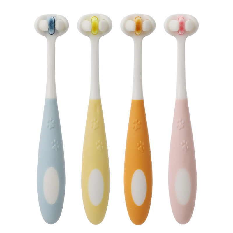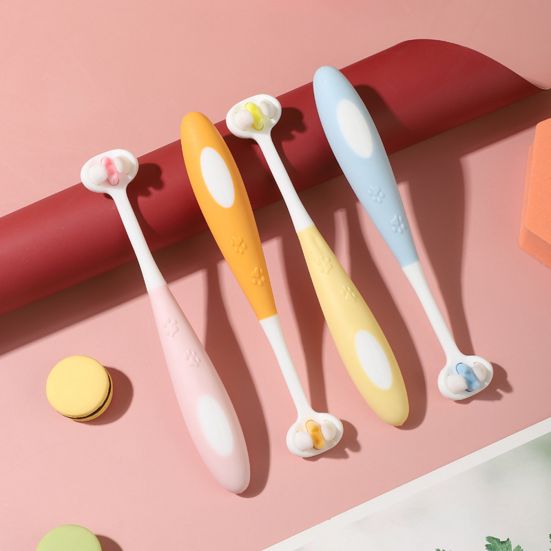 儿童软毛牙刷宝宝3-10岁万毛牙刷清洁三面包裹护齿猫爪防滑手柄
