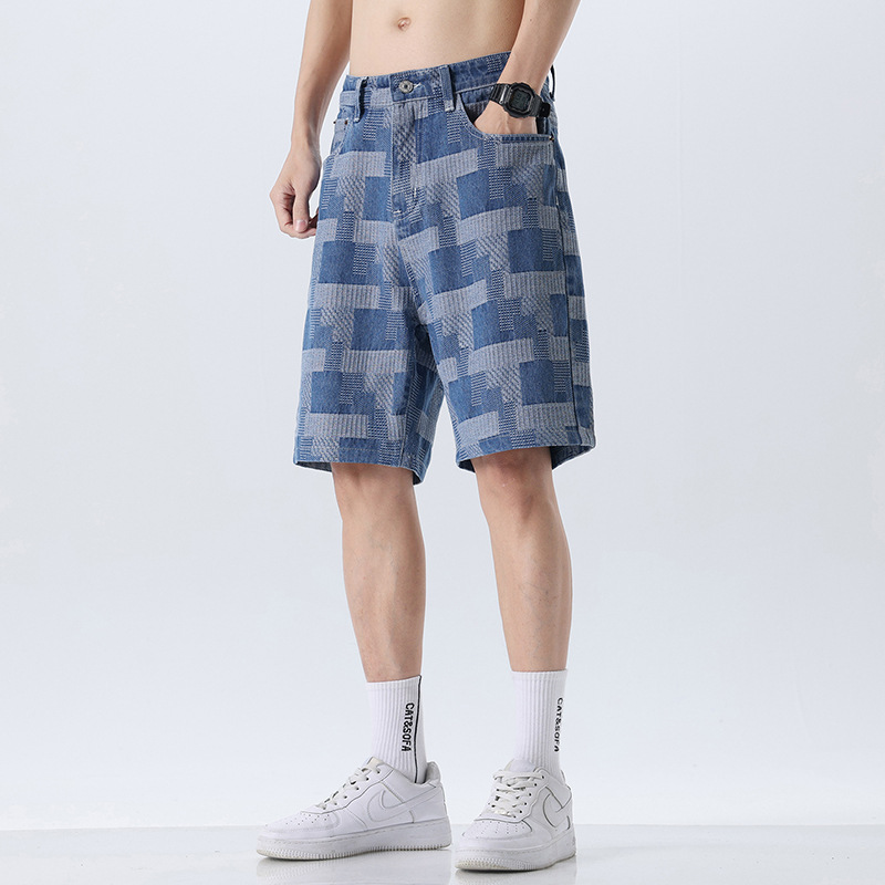新款夏款薄款短裤宽松直筒男士蓝色夏季五分裤潮牌中裤子