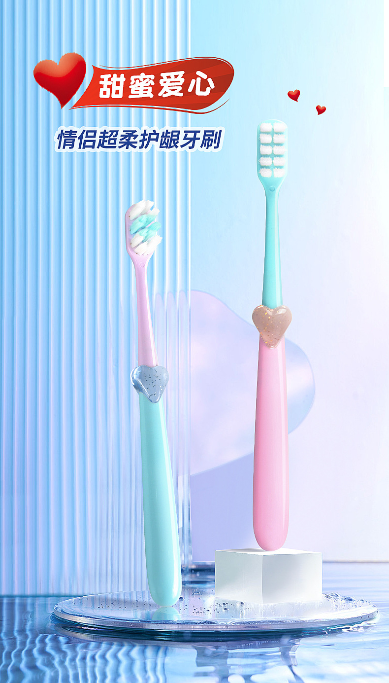 甜蜜爱心情侣软毛牙刷成人深入清洁牙齿独立包装结婚嫁新居必备