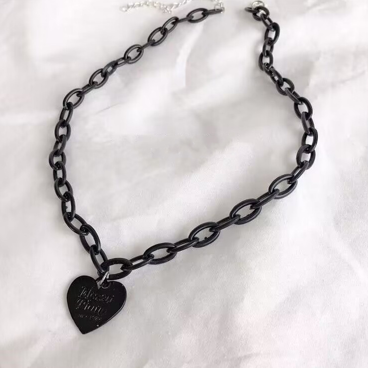 原宿风爱心撞色甜酷辣妹ins黑色爱心字母项链网红嘻哈个性黑色链