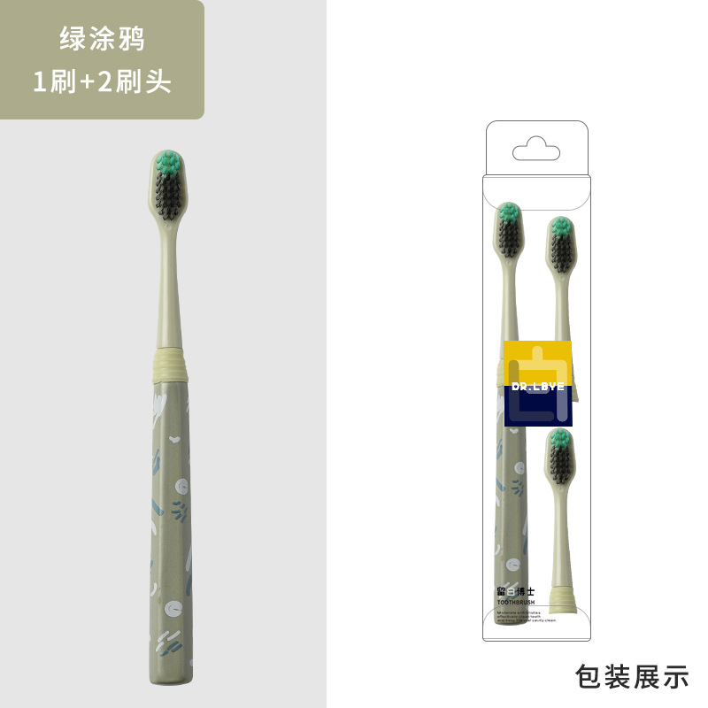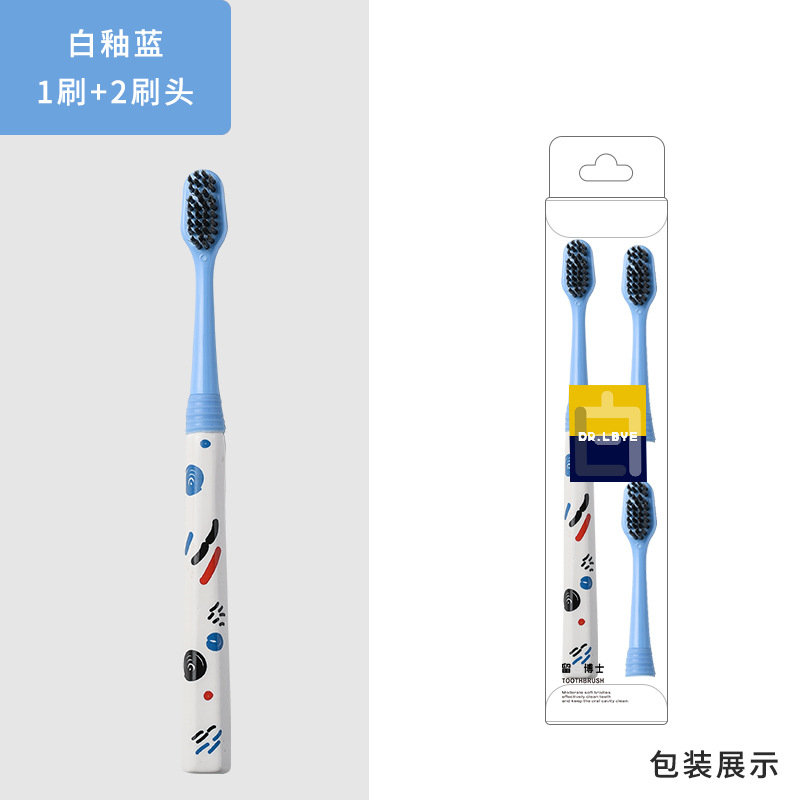 环保替换刷头成人牙刷陶瓷印花手柄小头超细软毛圆孔密植洁齿护龈