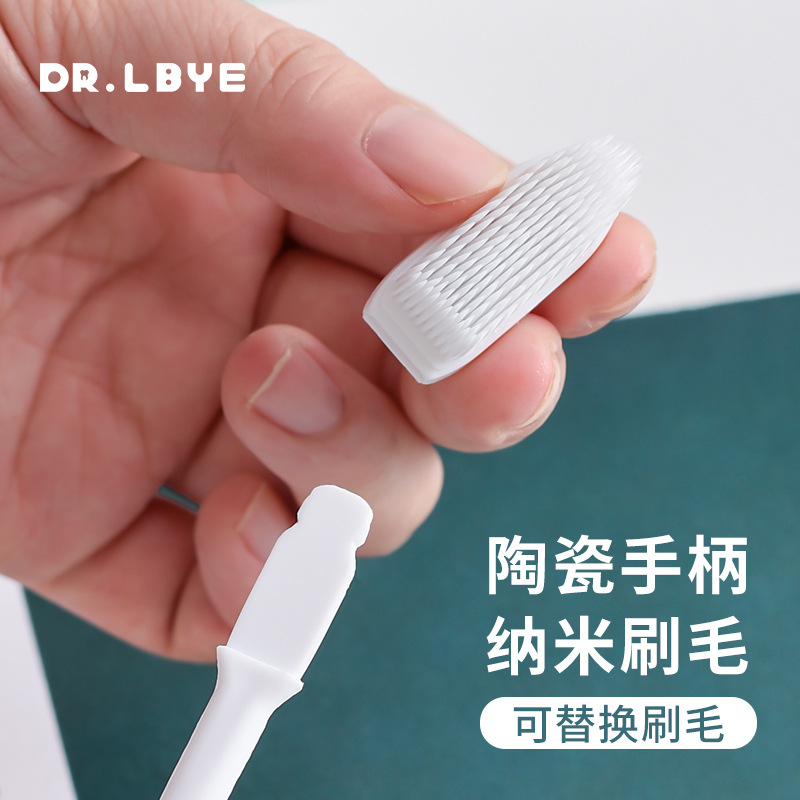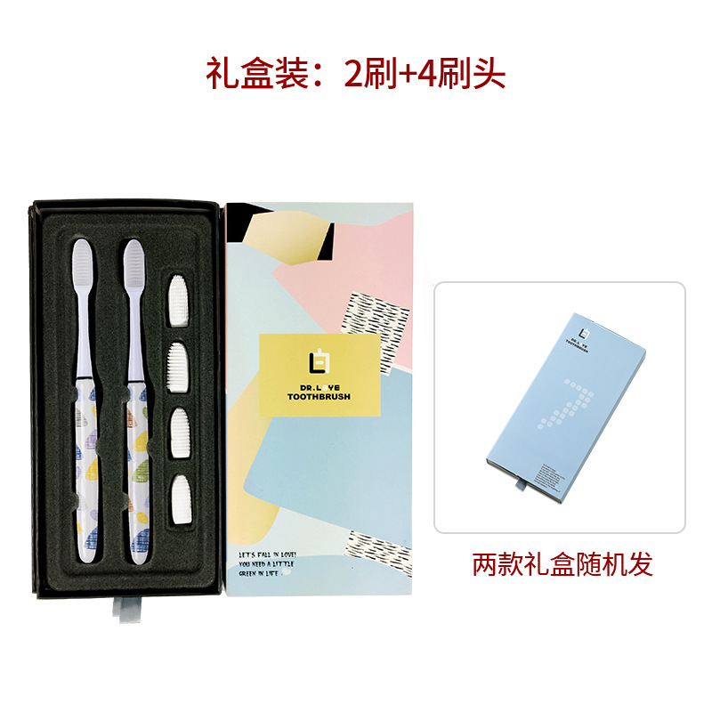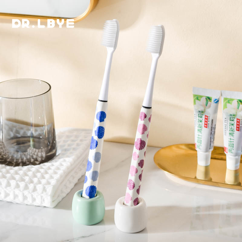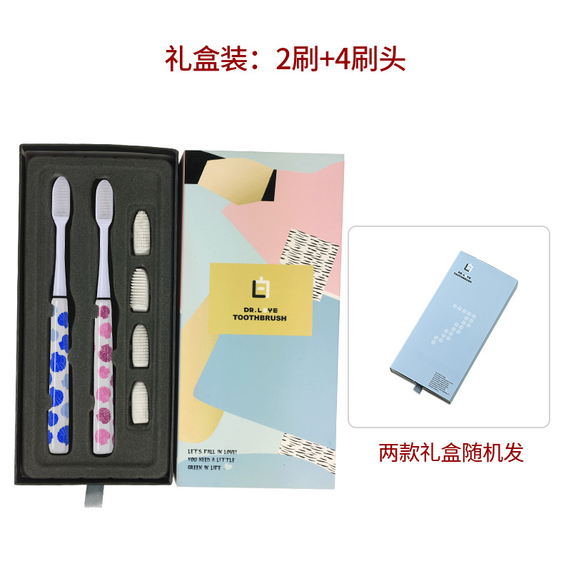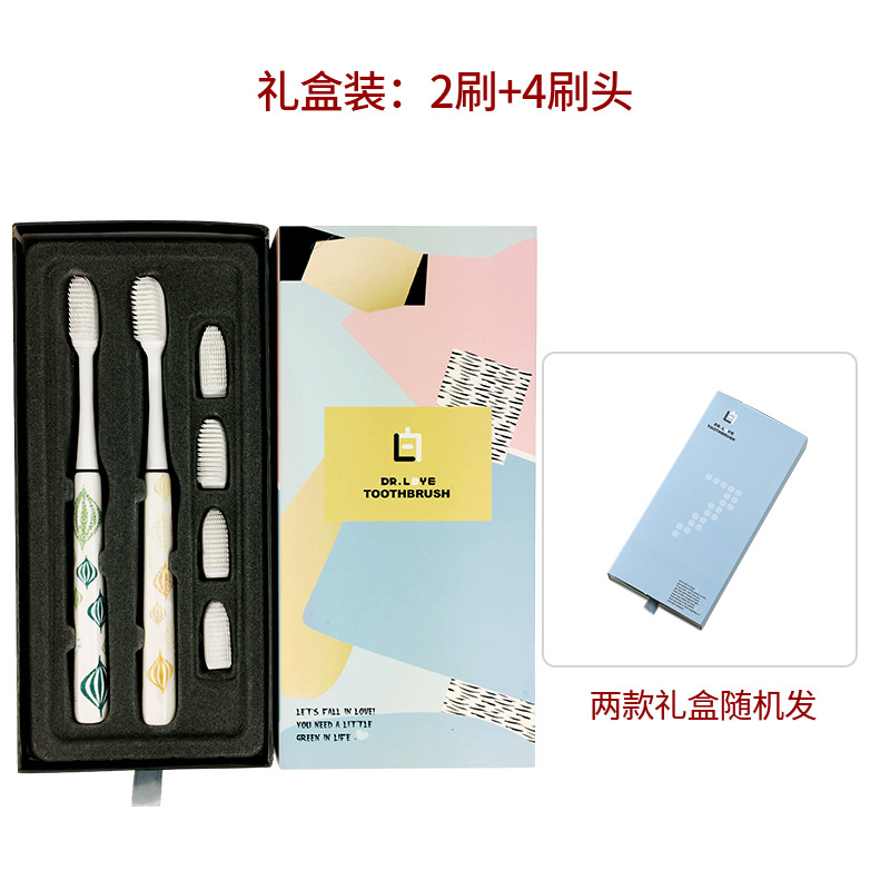 情侣印花陶瓷柄环保小头超细毛纳米成人牙刷 可替换4刷头