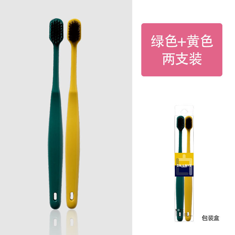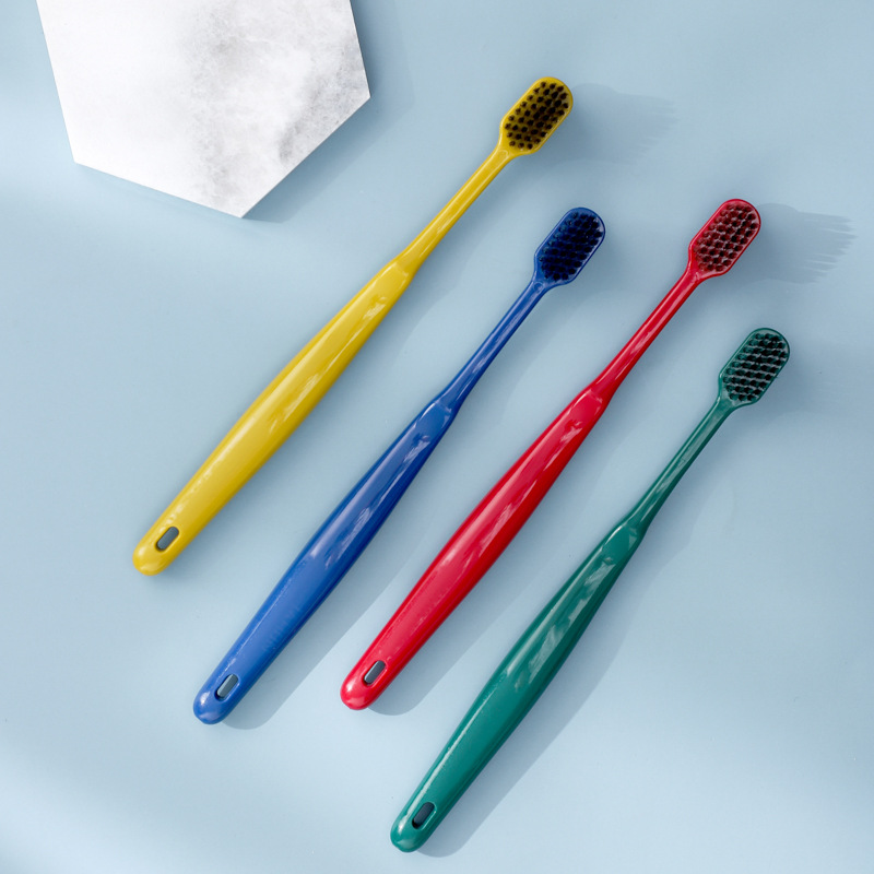 宽头宽柄高密软毛牙刷情侣竹炭刷丝家庭装四色