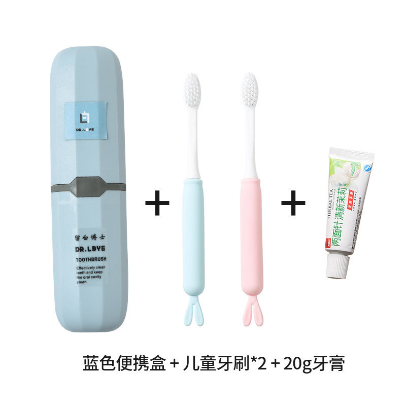 蓝色盒+儿童牙刷*2(粉+浅蓝)+牙膏