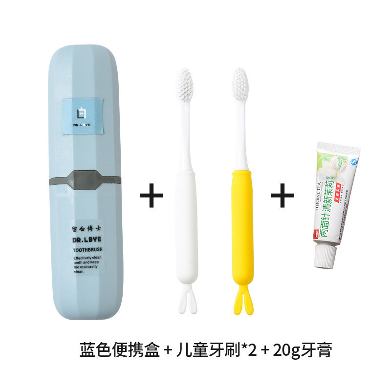 蓝色盒+儿童牙刷*2(白+黄)+牙膏