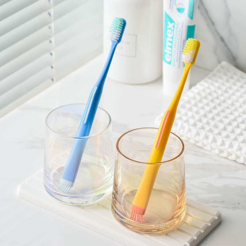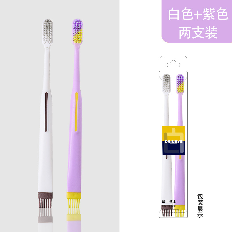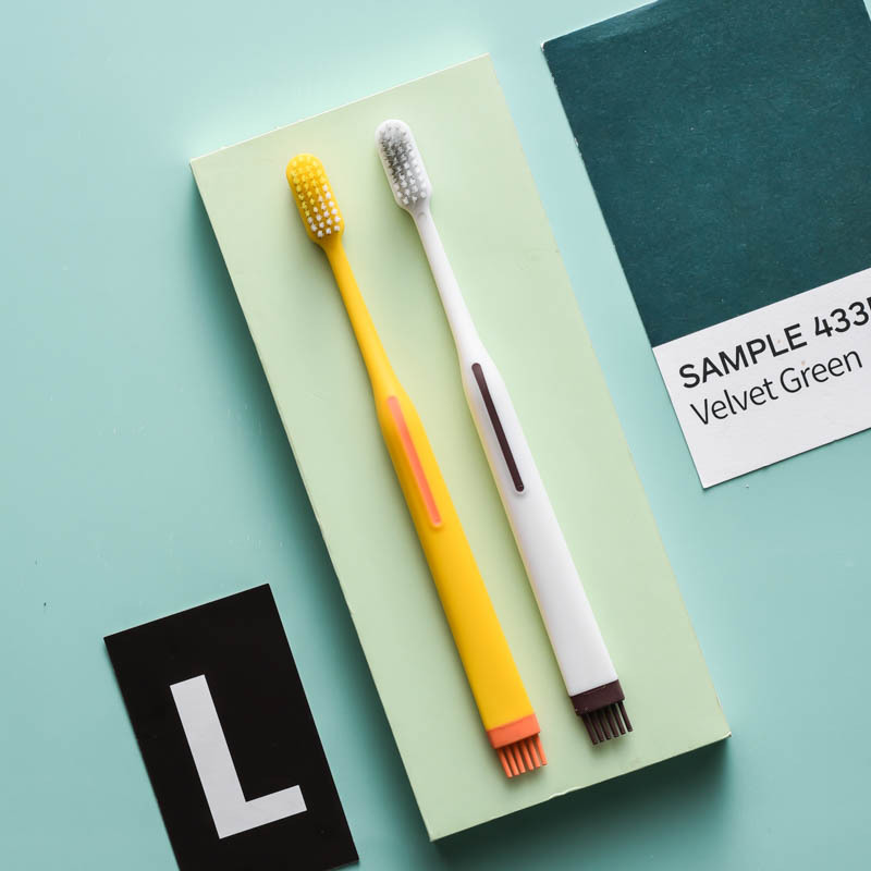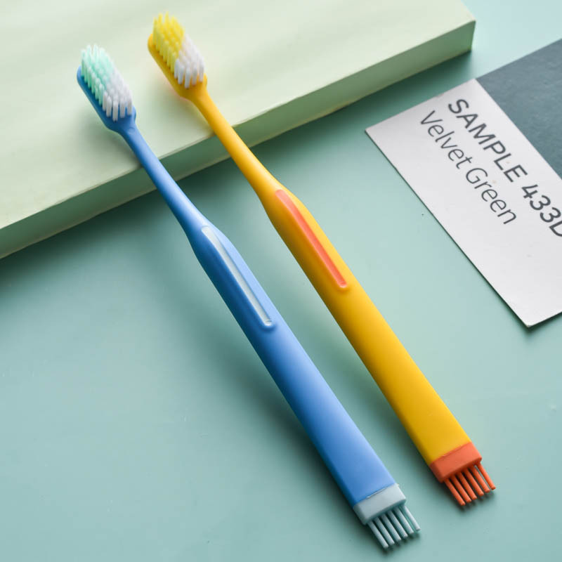 新款成人2支装双色软毛牙刷 舌苔清洁家用高品质自带清洁刷杯垢