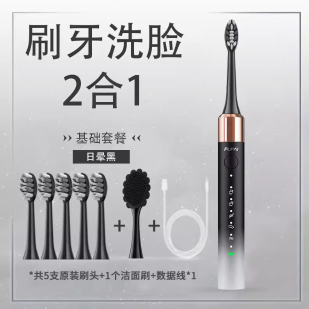 - 刷牙洗脸2合1【日晕黑】▲共5刷头+洁面刷
