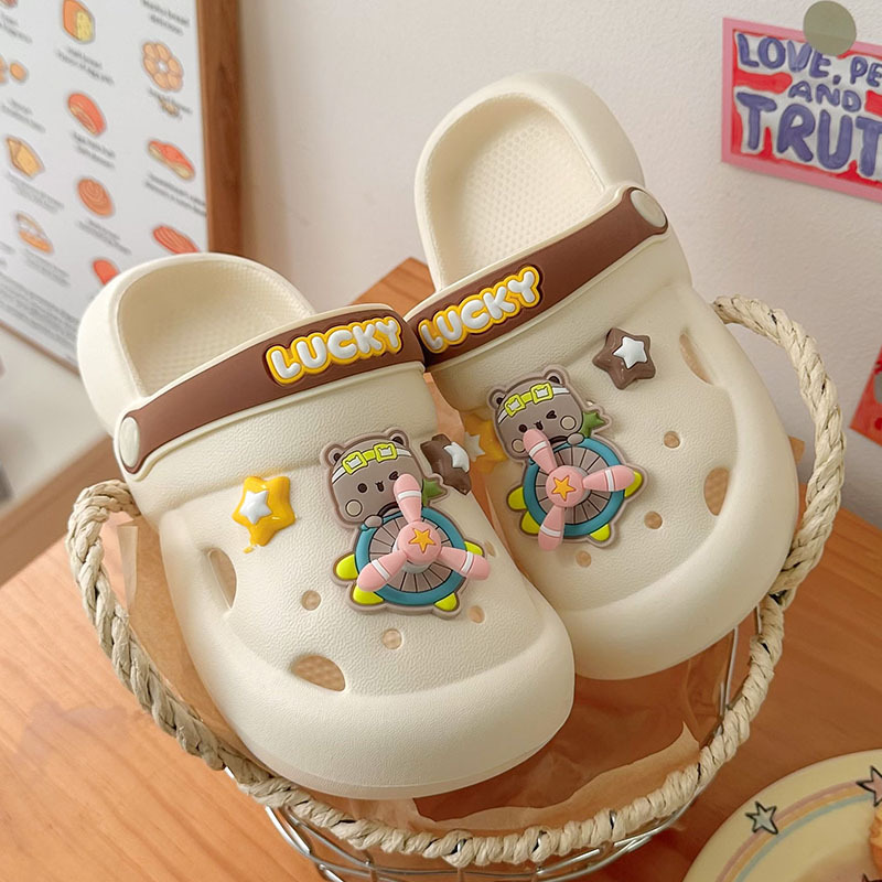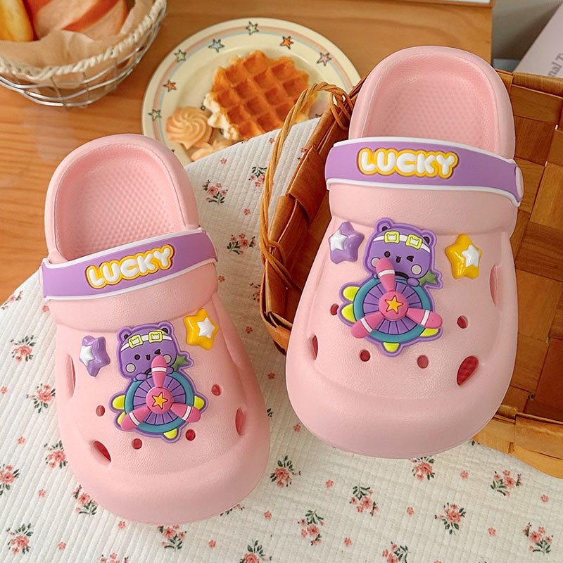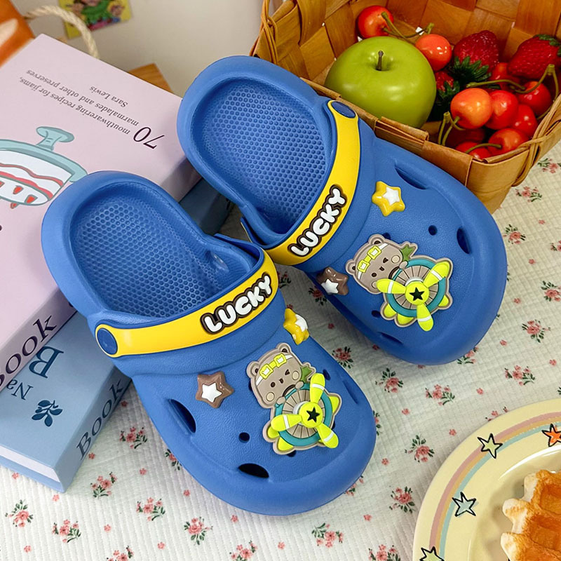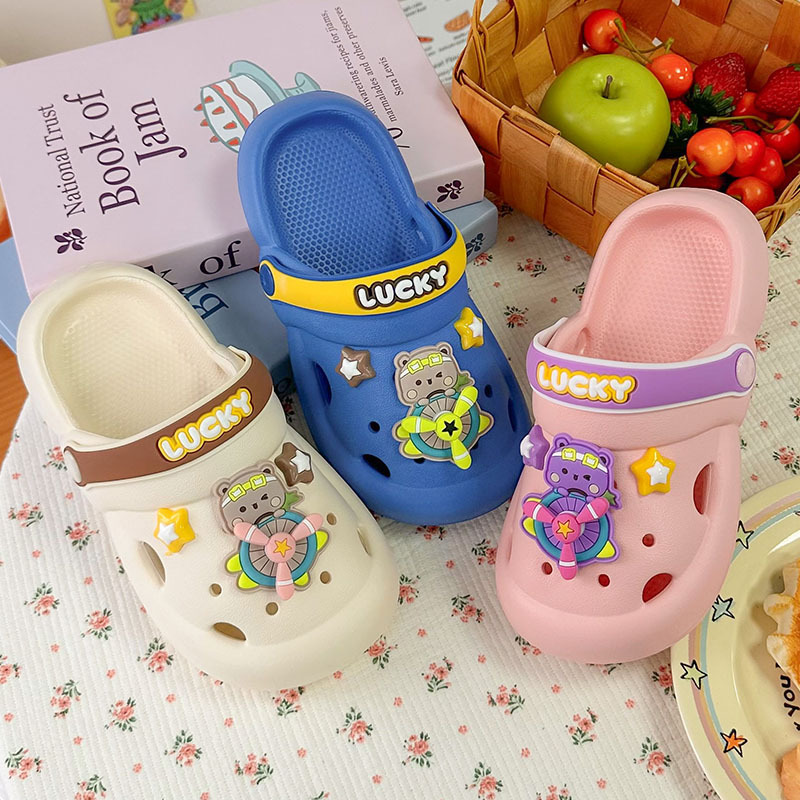 蚂蚁之恋春夏新品卡通可爱风车小熊儿童男孩女孩外穿凉拖鞋洞洞鞋