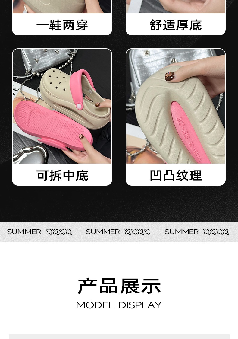 蚂蚁之恋春夏新品简约时尚撞情侣款男女外穿厚底洞洞鞋两穿增高