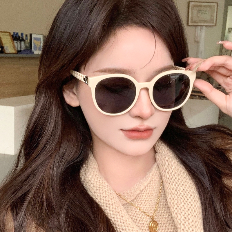 新款复古偏光太阳眼镜圆框麻花腿墨镜大脸显瘦防紫外线女士55013